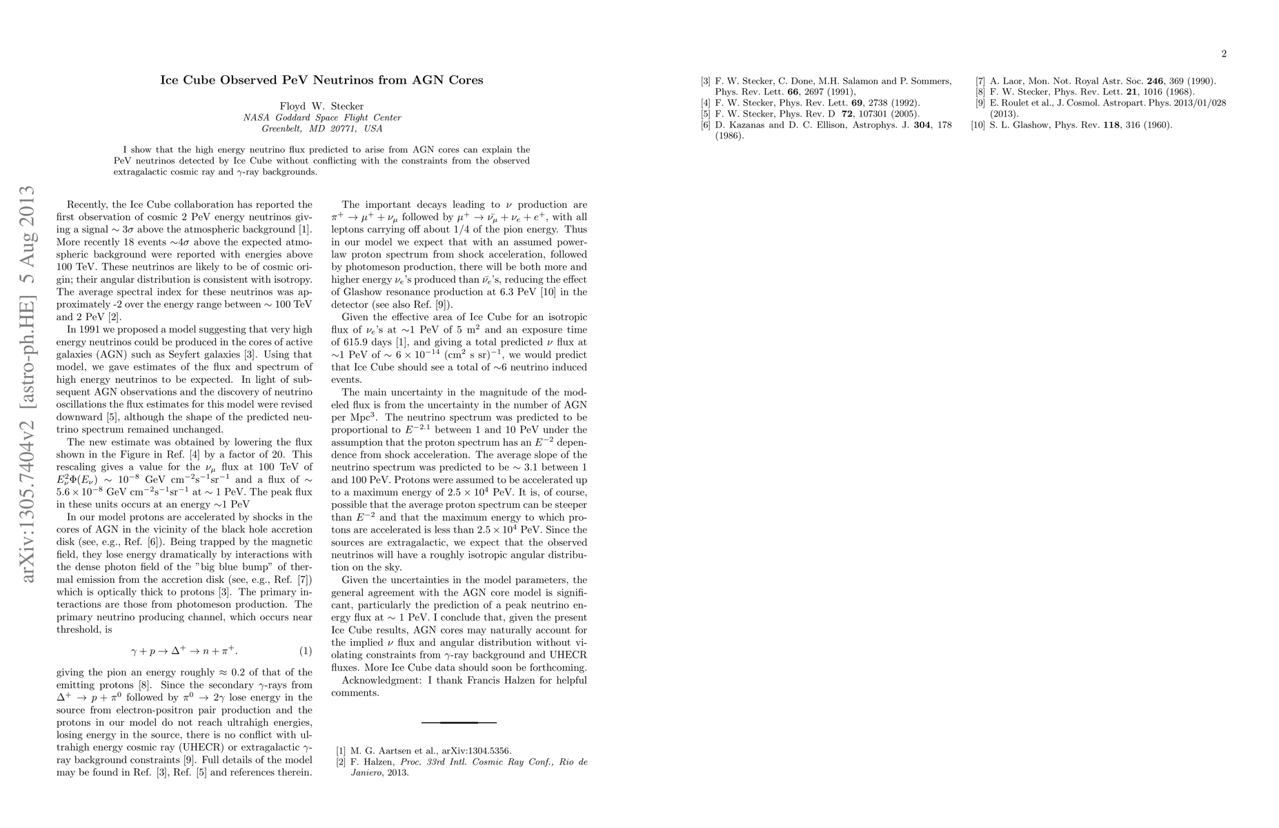 Summary: The study demonstrates that the high-energy neutrino flux from active galactic nuclei (AGN) cores can account for the PeV neutrinos detected by Ice Cube, without violating constraints from cosmic ray and gamma-ray observations. This suggests a plausible astrophysical origin for these high-energy neutrinos.