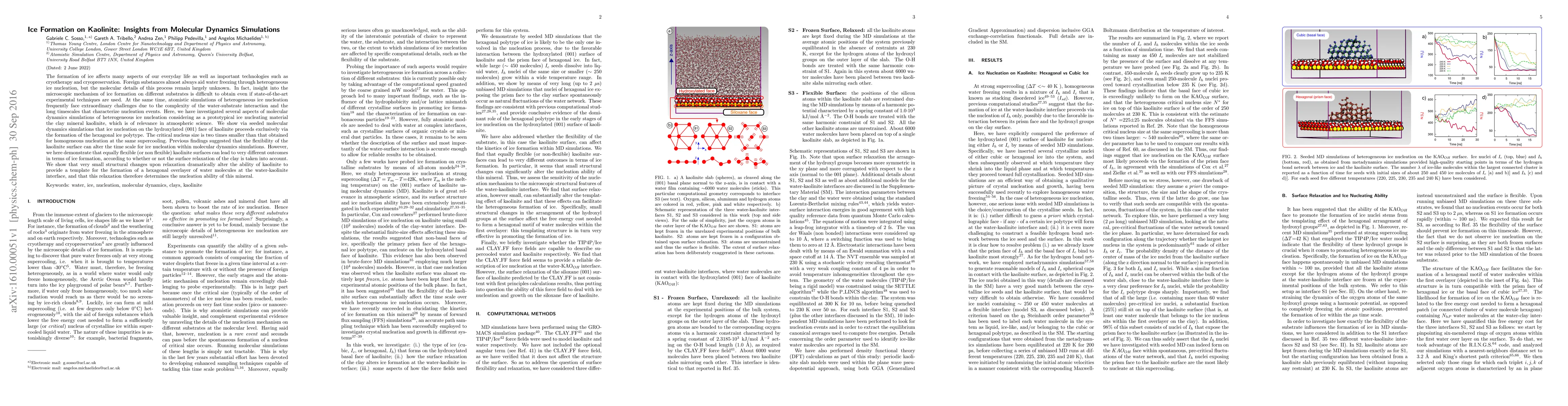 This paper uses molecular dynamics simulations to study ice nucleation on kaolinite, a clay mineral, revealing that the hydroxylated (001) face of kaolinite exclusively forms hexagonal ice. The study highlights that surface relaxation of kaolinite significantly alters its ability to facilitate ice formation, demonstrating that even minor structural changes can impact the nucleation process.