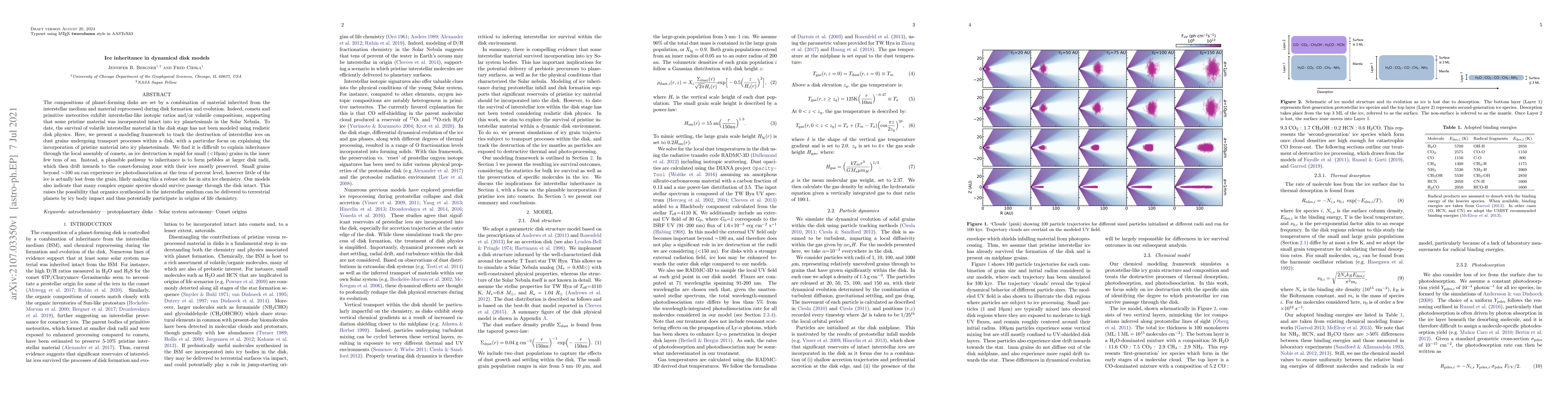 The compositions of planet-forming disks are set by a combination of material inherited from the interstellar medium and material reprocessed during disk formation and evolution. Indeed, comets and primitive meteorites exhibit interstellar-like isotopic ratios and/or volatile compositions, supporting that some pristine material was incorporated intact into icy planetesimals in the Solar Nebula. To date, the survival of volatile interstellar material in the disk stage has not been modeled using realistic disk physics. Here, we present a modeling framework to track the destruction of interstellar ices on dust grains undergoing transport processes within a disk, with a particular focus on explaining the incorporation of pristine material into icy planetesimals. We find it is difficult to explain inheritance through the local assembly of comets, as ice destruction is rapid for small (<10um) grains in the inner few tens of au. Instead, a plausible pathway to inheritance is to form pebbles at larger disk radii, which then drift inwards to the comet-forming zone with their ices mostly preserved. Small grains beyond ~100 au can experience ice photodissociation at the tens of percent level, however little of the ice is actually lost from the grain, likely making this a robust site for in situ ice chemistry. Our models also indicate that many complex organic species should survive passage through the disk intact. This raises the possibility that organics synthesized in the interstellar medium can be delivered to terrestrial planets by icy body impact and thus potentially participate in origins of life chemistry.