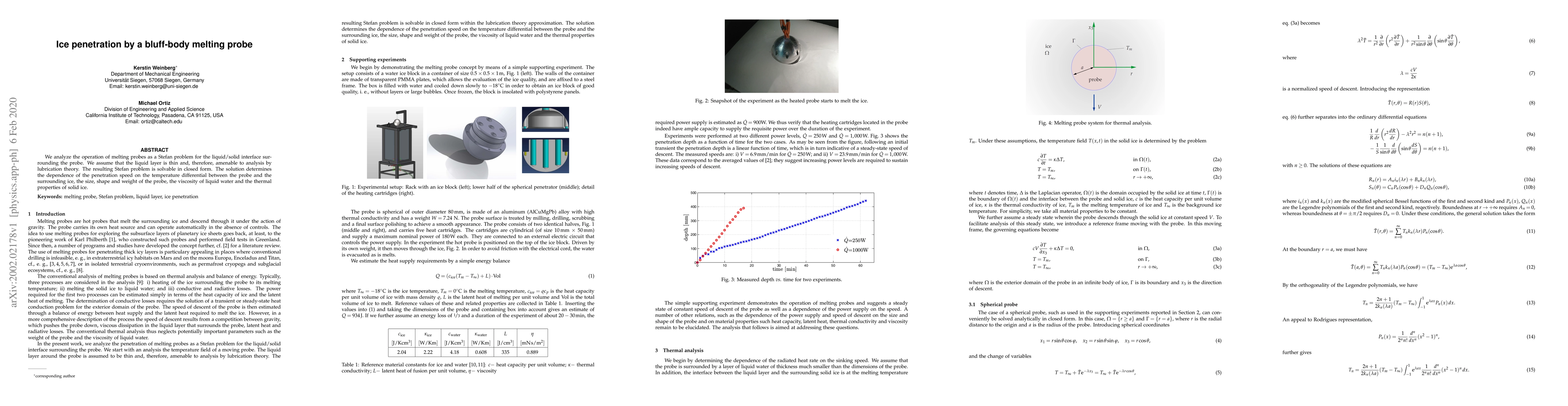 We analyze the operation of melting probes as a Stefan problem for the liquid/solid interface surrounding the probe. We assume that the liquid layer is thin and, therefore, amenable to analysis by lubrication theory. The resulting Stefan problem is solvable in closed form. The solution determines the dependence of the penetration speed on the temperature differential between the probe and the surrounding ice, the size, shape and weight of the probe, the viscosity of liquid water and the thermal properties of solid ice.