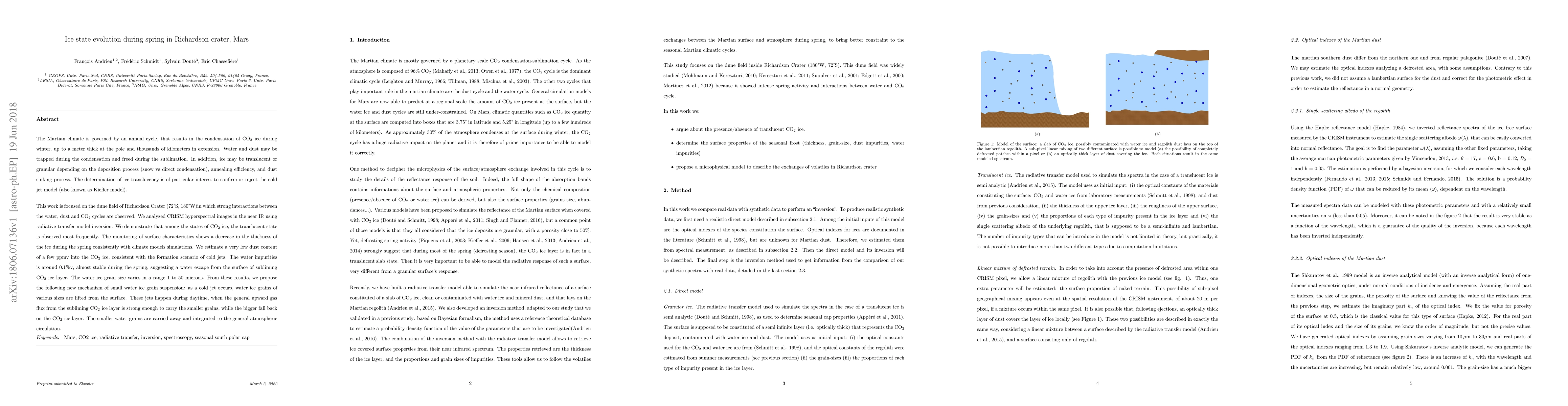 The study utilized CRISM hyperspectral images in the near IR, applying radiative transfer model inversion to analyze the dune field of Richardson Crater on Mars, focusing on CO2 ice state evolution during spring.