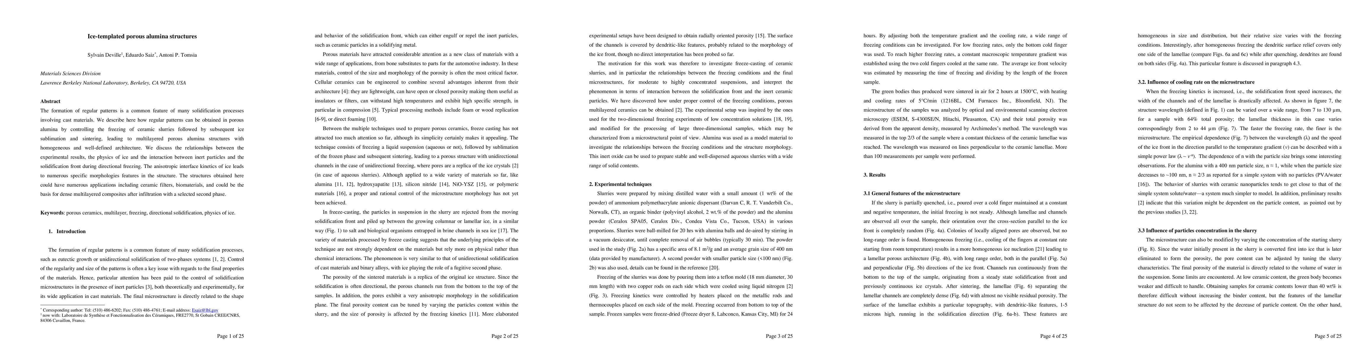 Researchers developed a method to create regular porous alumina structures with homogeneous architecture using ice templating, which could lead to applications in ceramic filters, biomaterials, and composite materials.