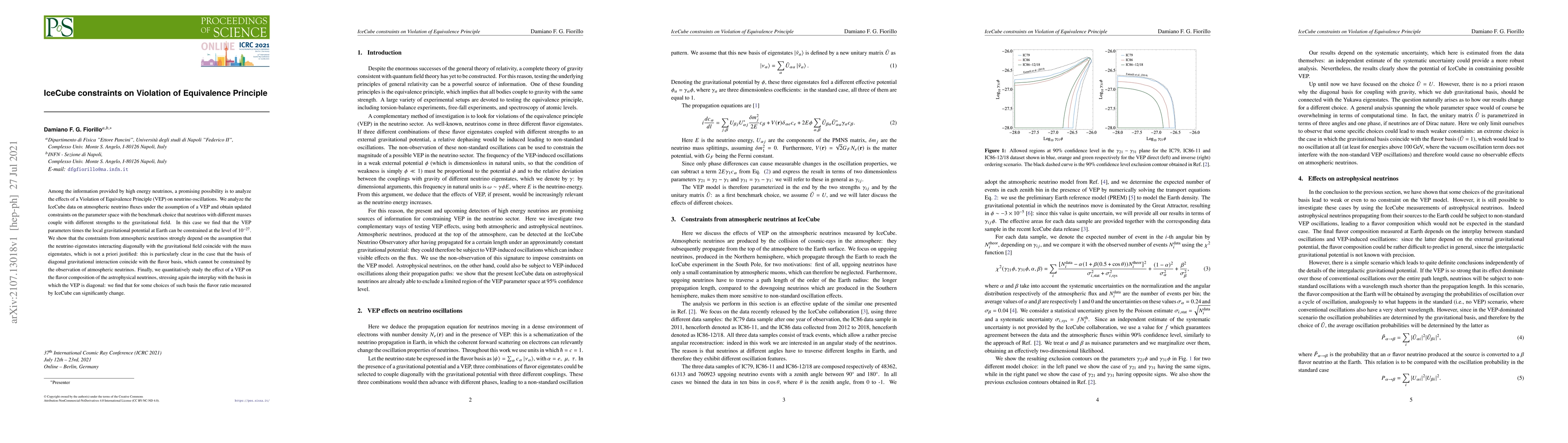 The IceCube experiment provides updated constraints on the Violation of Equivalence Principle (VEP) parameters, finding them to be constrained at the level of $10^{-27}$. The study highlights the dependency of these constraints on the assumption that neutrino eigenstates interacting with gravity align with mass eigenstates.