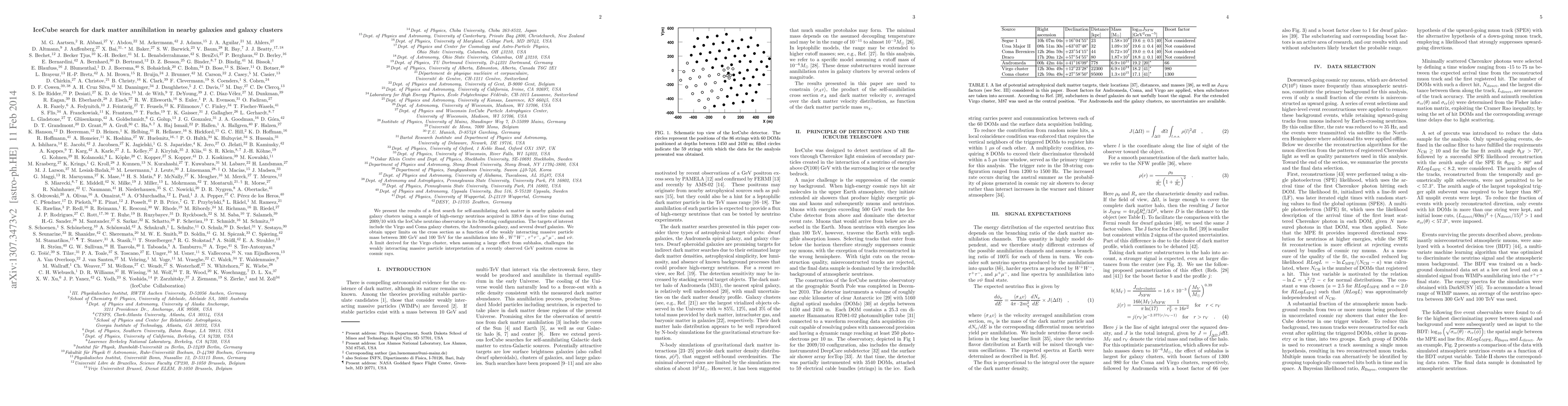 The IceCube observatory conducted a search for dark matter annihilation in nearby galaxies and galaxy clusters, setting upper limits on the cross section for various dark matter particle masses. The results challenge the weakly interacting massive particle explanation for a recent GeV positron excess observed in cosmic rays.