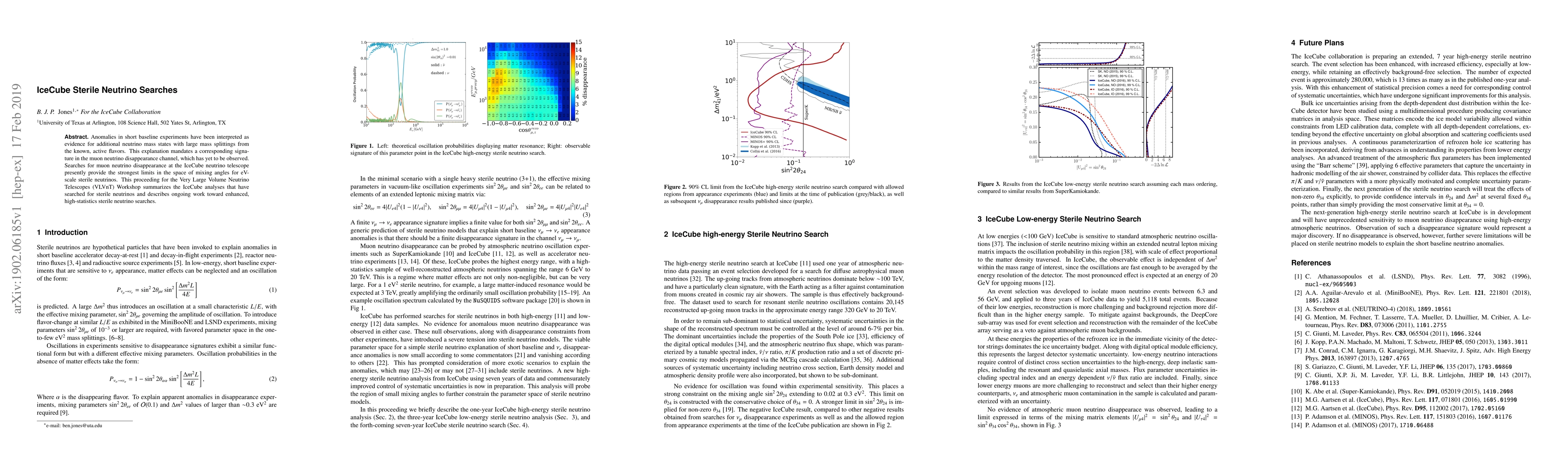 The IceCube Neutrino Telescope has conducted searches for sterile neutrinos to explain anomalies in short baseline experiments, but no corresponding muon neutrino disappearance has been observed. Current results provide strong limits on eV-scale sterile neutrino mixing angles, with ongoing efforts aimed at higher-statistics searches.