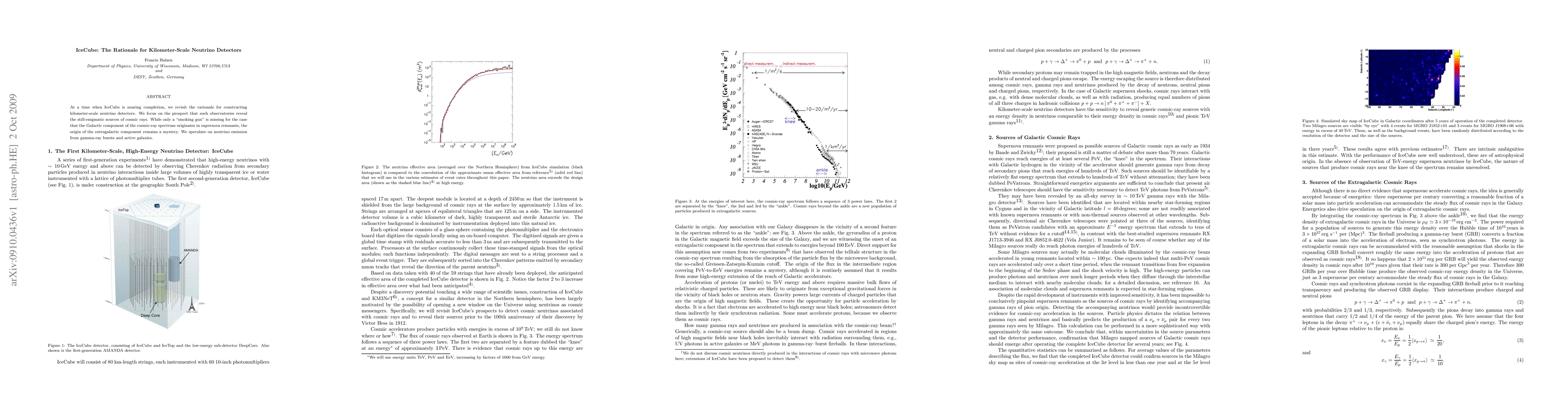 IceCube's completion prompts a review of the justification for kilometer-scale neutrino detectors, emphasizing their potential to uncover the sources of cosmic rays, particularly the enigmatic extragalactic component, and speculating on neutrino emissions from gamma-ray bursts and active galaxies.