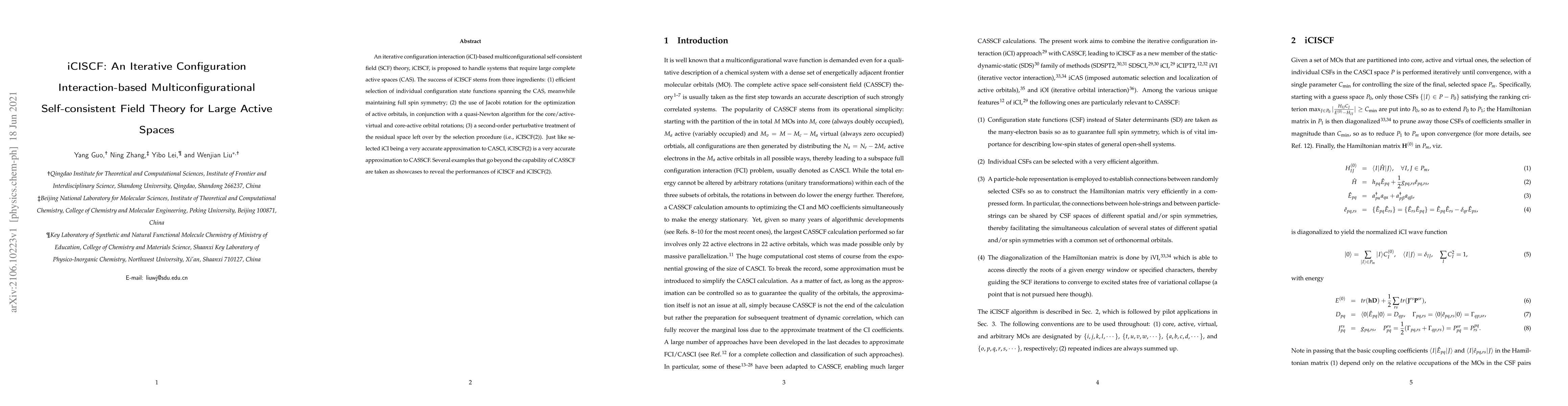 iCISCF is an iterative configuration interaction method for large active spaces, combining efficient configuration selection, orbital optimization, and a perturbative treatment of residual space to provide accurate approximations to CASSCF calculations. It demonstrates effectiveness in systems beyond the reach of traditional CASSCF.