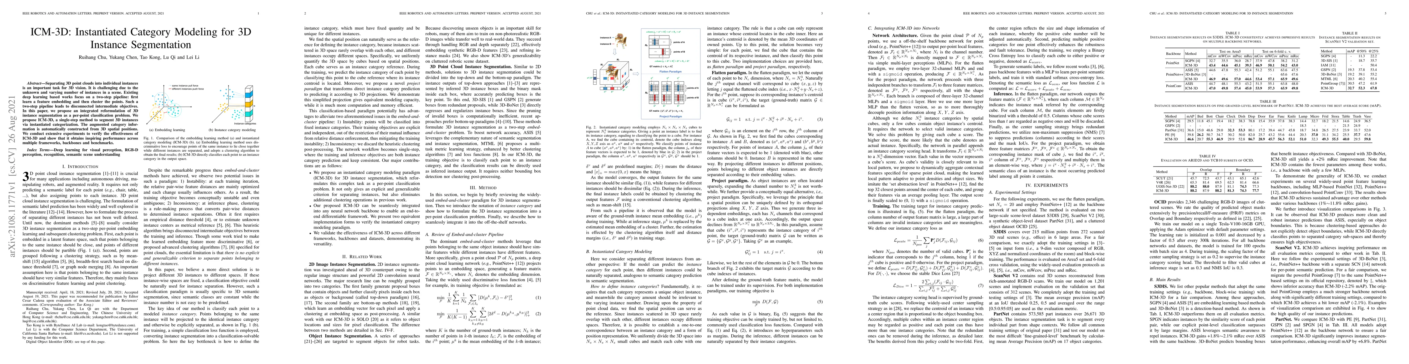 Separating 3D point clouds into individual instances is an important task for 3D vision. It is challenging due to the unknown and varying number of instances in a scene. Existing deep learning based works focus on a two-step pipeline: first learn a feature embedding and then cluster the points. Such a two-step pipeline leads to disconnected intermediate objectives. In this paper, we propose an integrated reformulation of 3D instance segmentation as a per-point classification problem. We propose ICM-3D, a single-step method to segment 3D instances via instantiated categorization. The augmented category information is automatically constructed from 3D spatial positions. We conduct extensive experiments to verify the effectiveness of ICM-3D and show that it obtains inspiring performance across multiple frameworks, backbones and benchmarks.