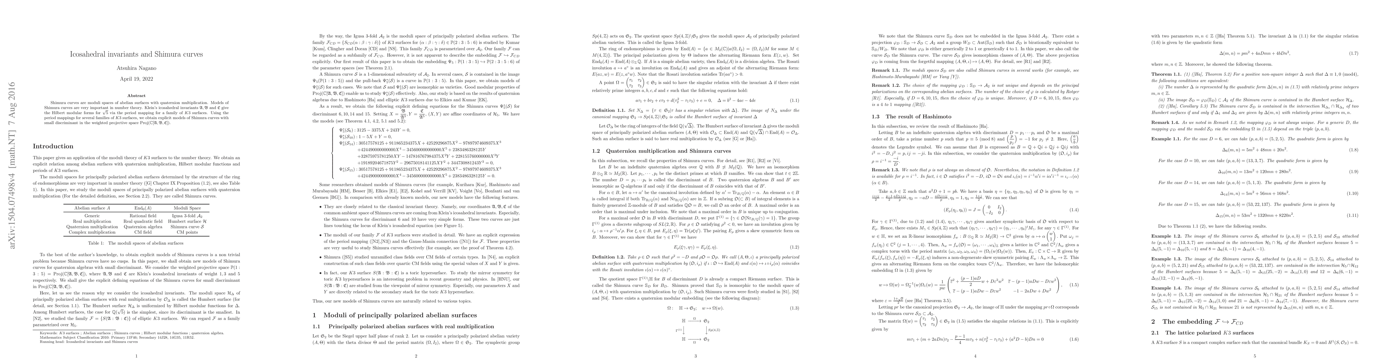 This paper explores the connection between Shimura curves and icosahedral invariants, deriving explicit models of Shimura curves using Klein's icosahedral invariants $\mathfrak{A}$, $\mathfrak{B}$, and $\mathfrak{C}$ in weighted projective space. The focus is on obtaining these models through period mappings for families of K3 surfaces.
