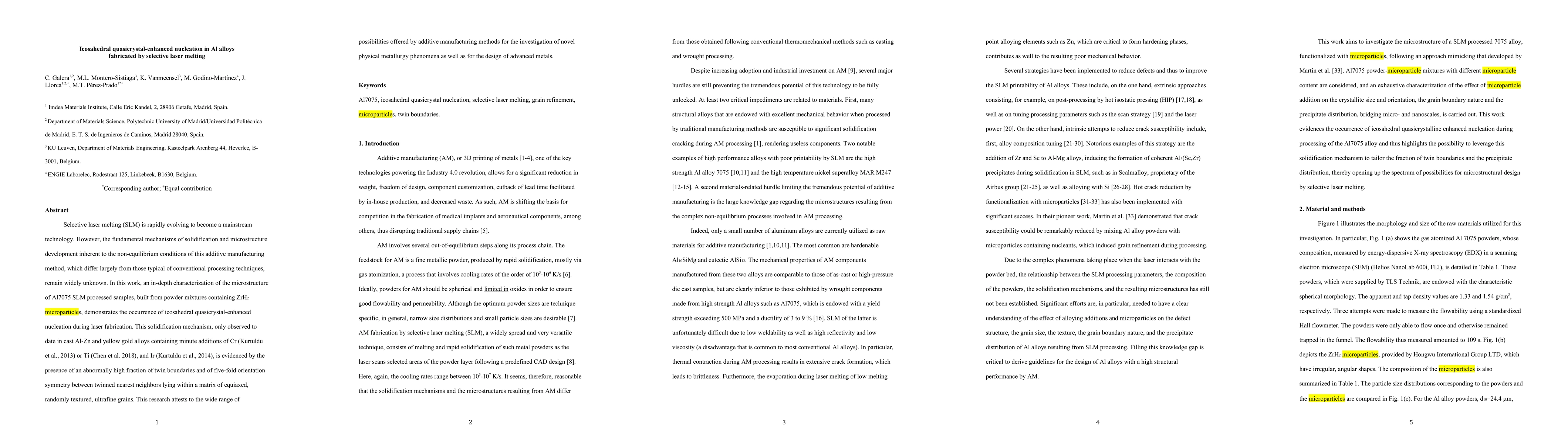 This study investigates the microstructure of Al7075 processed via selective laser melting (SLM) and reveals icosahedral quasicrystal-enhanced nucleation, a previously rare phenomenon observed in cast Al-Zn and precious metal alloys. The findings highlight the potential of additive manufacturing to uncover novel solidification mechanisms in advanced alloys.