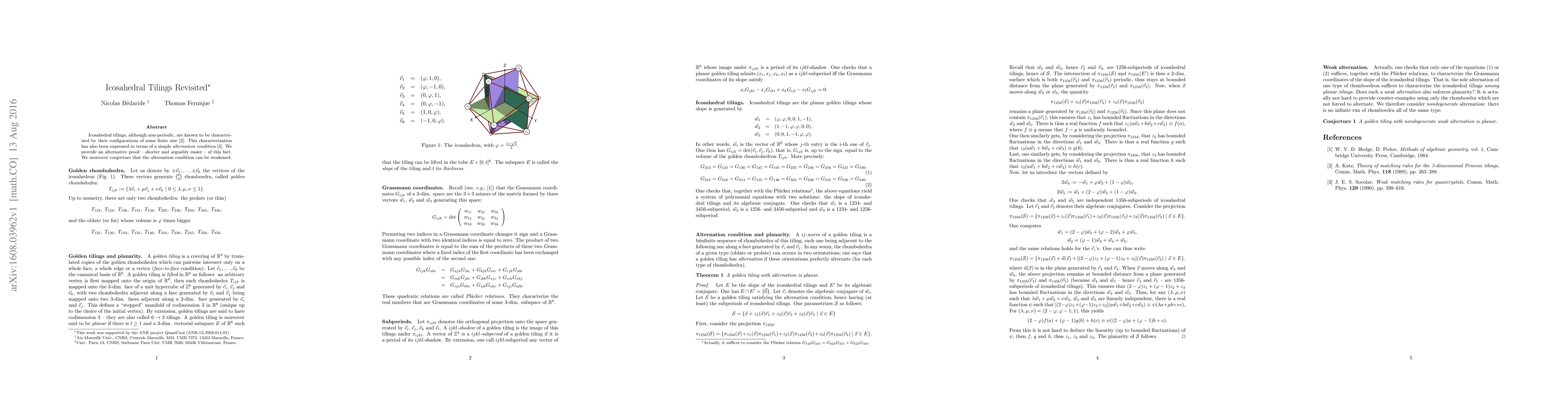 Researchers provide a new proof for a characterization of icosahedral tilings, suggesting that an alternation condition can be weakened, offering a more efficient alternative to existing proofs.