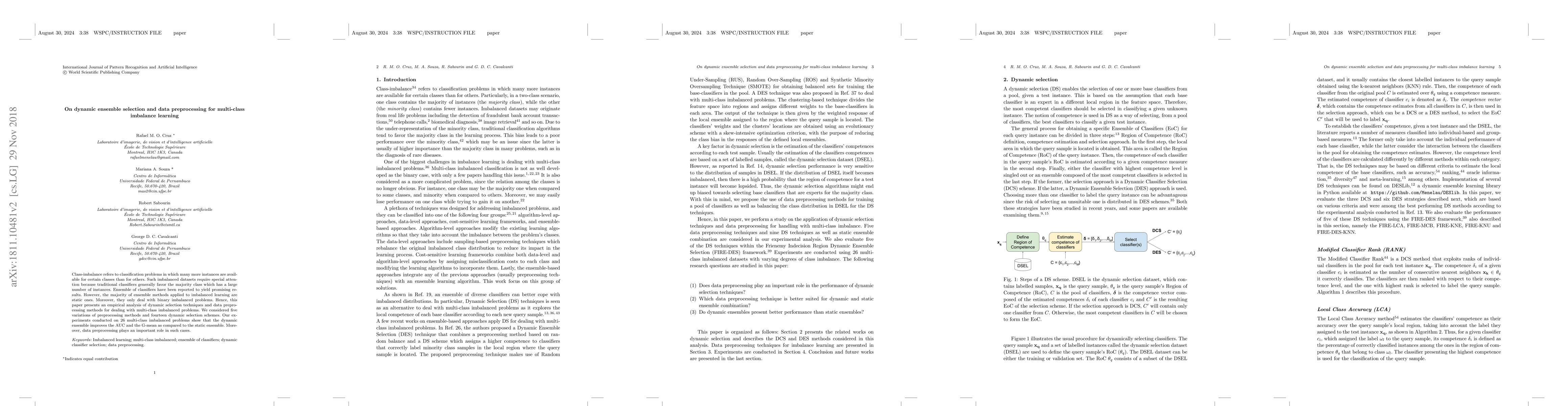 This paper explores dynamic ensemble selection and data preprocessing techniques for multi-class imbalance learning, demonstrating that dynamic ensembles outperform static ones in improving AUC and G-mean metrics. Experiments on 26 multi-class imbalanced datasets highlight the significance of data preprocessing in enhancing classification performance.