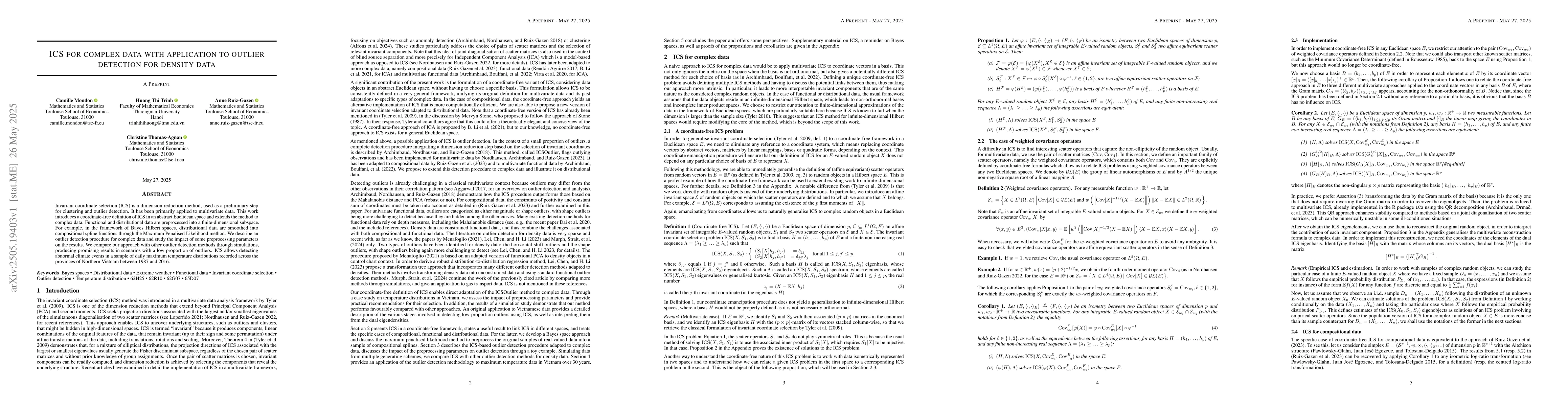 A new method for outlier detection in complex data is proposed using invariant coordinate selection (ICS) in an abstract Euclidean space, with promising results in detecting abnormal climate events.