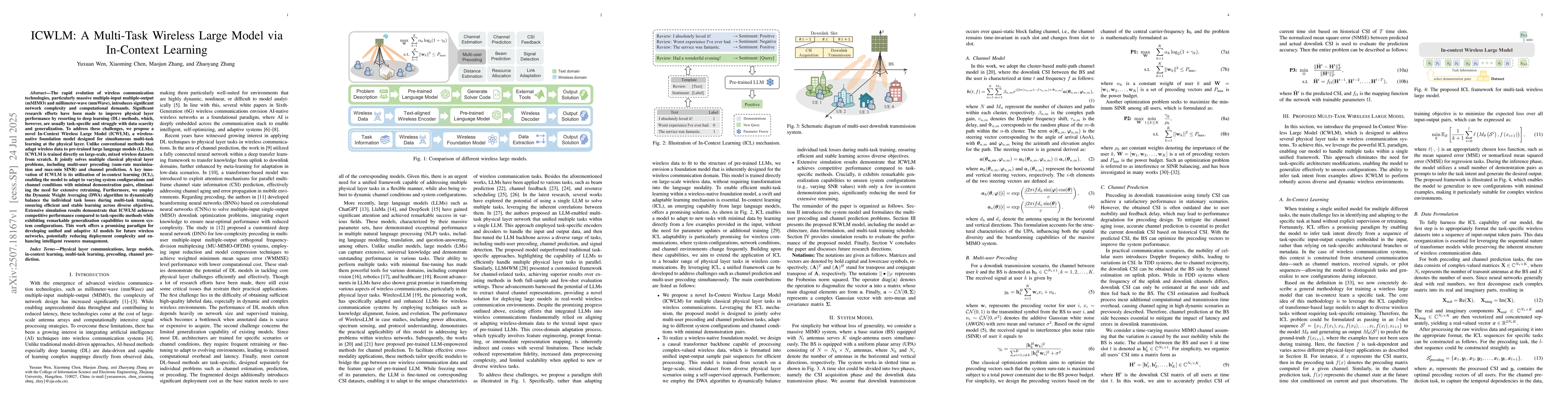 The rapid evolution of wireless communication technologies, particularly massive multiple-input multiple-output (mMIMO) and millimeter-wave (mmWave), introduces significant network complexity and computational demands. Significant research efforts have been made to improve physical layer performance by resorting to deep learning (DL) methods, which, however, are usually task-specific and struggle with data scarcity and generalization. To address these challenges, we propose a novel In-Context Wireless Large Model (ICWLM), a wireless-native foundation model designed for simultaneous multi-task learning at the physical layer. Unlike conventional methods that adapt wireless data to pre-trained large language models (LLMs), ICWLM is trained directly on large-scale, mixed wireless datasets from scratch. It jointly solves multiple classical physical layer problems, including multi-user precoding (sum-rate maximization and max-min SINR) and channel prediction. A key innovation of ICWLM is its utilization of in-context learning (ICL), enabling the model to adapt to varying system configurations and channel conditions with minimal demonstration pairs, eliminating the need for extensive retraining. Furthermore, we employ the Dynamic Weight Averaging (DWA) algorithm to dynamically balance the individual task losses during multi-task training, ensuring efficient and stable learning across diverse objectives. Extensive simulation results demonstrate that ICWLM achieves competitive performance compared to task-specific methods while exhibiting remarkable generalization capabilities to unseen system configurations. This work offers a promising paradigm for developing unified and adaptive AI models for future wireless networks, potentially reducing deployment complexity and enhancing intelligent resource management.