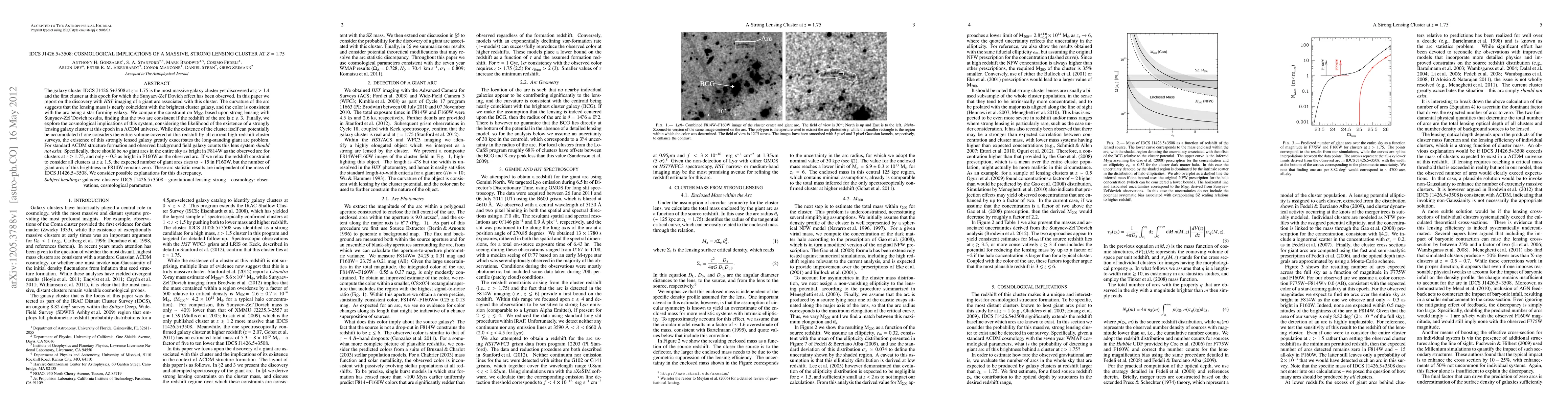 IDCS J1426.5+3508, a massive galaxy cluster at z = 1.75, exhibits a giant arc suggesting strong lensing, challenging standard LCDM predictions for such bright arcs at high redshifts. The findings suggest a discrepancy between observed and expected giant arcs, raising questions about current cosmological models.