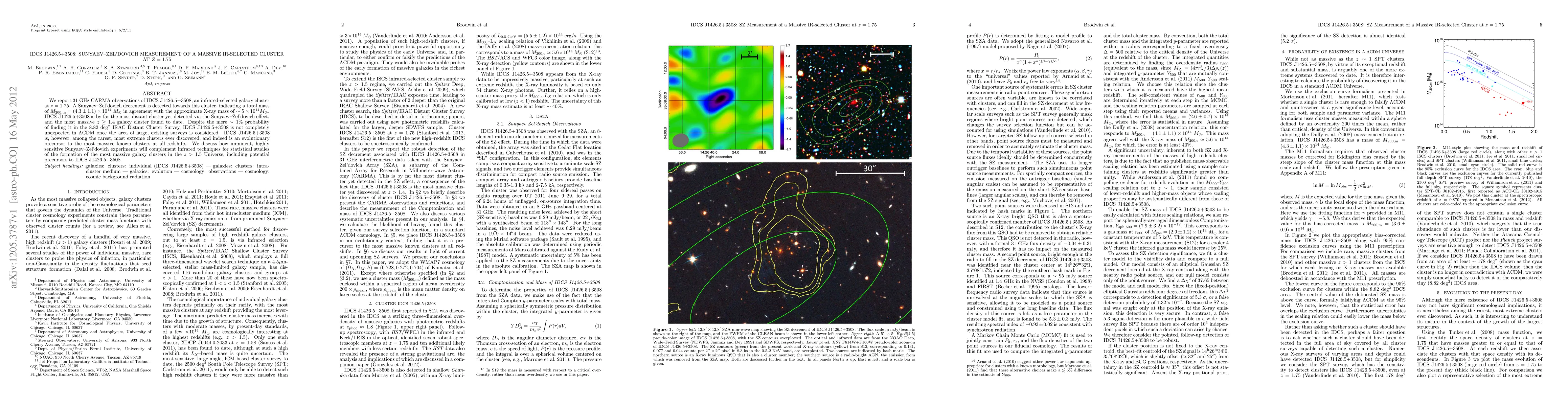 This paper reports the detection of a Sunyaev-Zel'dovich decrement in the massive IR-selected galaxy cluster IDCS J1426.5+3508 at z=1.75, revealing a total mass of 4.3 x 10^{14} Msun, making it the most distant and massive cluster found to date.