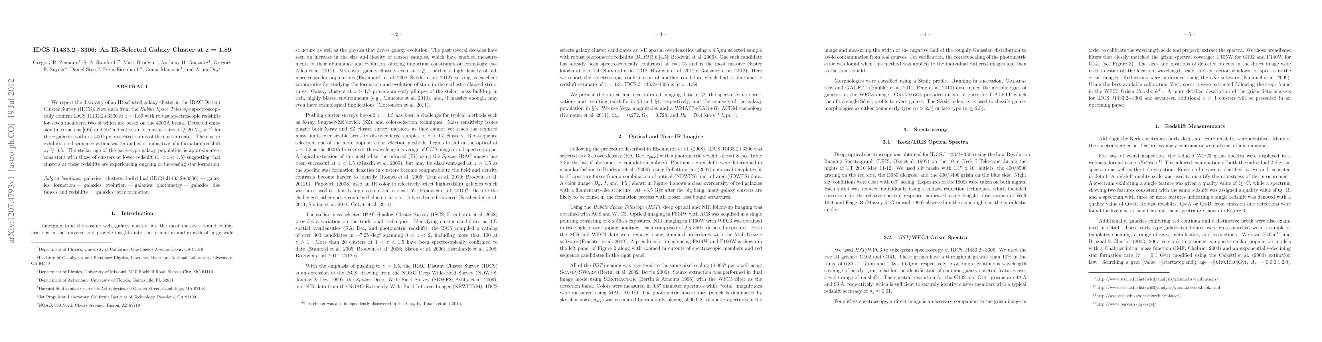 Scientists discovered an IR-selected galaxy cluster at z = 1.89, with star formation rates exceeding 20 solar masses per year for three galaxies. The findings suggest that clusters at these redshifts experience ongoing or increasing star formation.