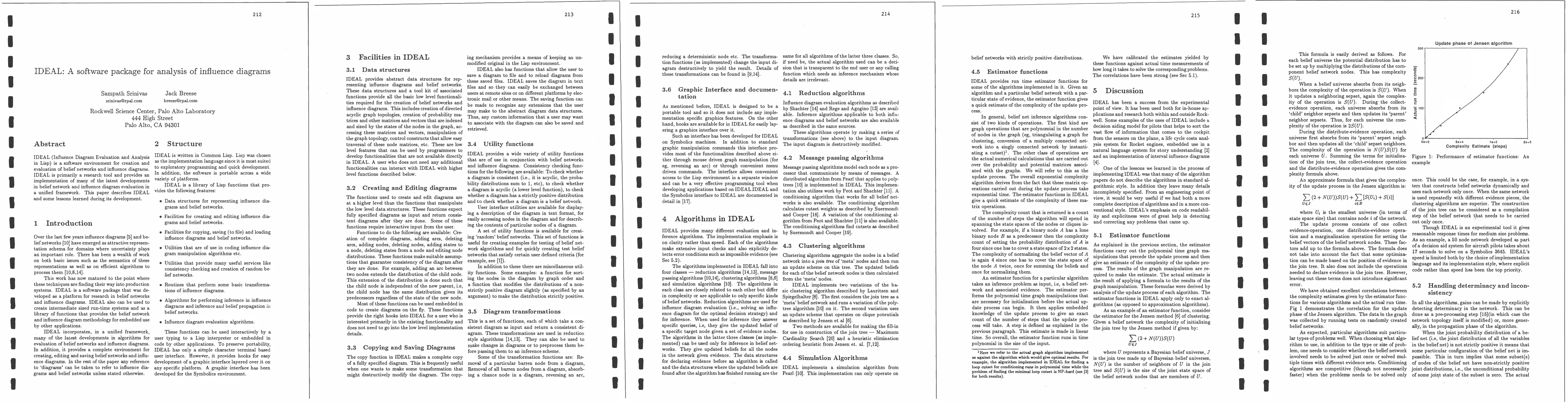 IDEAL is a software package for constructing and evaluating belief networks and influence diagrams, primarily serving as a research tool. The paper details its development and highlights key lessons learned from its implementation.