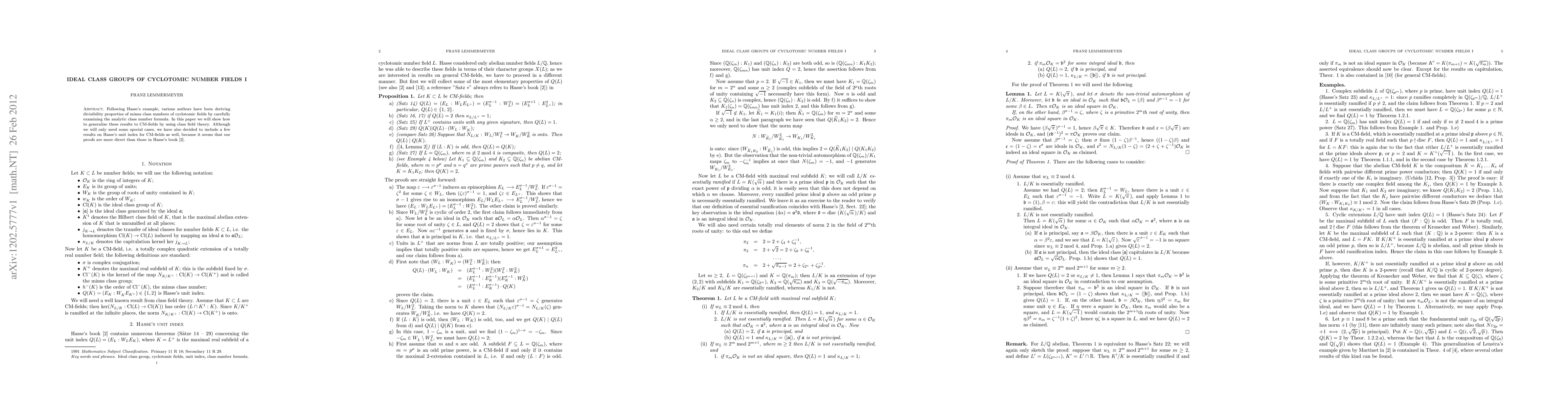 This paper generalizes Hasse's results on divisibility properties of minus class numbers in cyclotomic fields to CM-fields using class field theory, and provides more direct proofs for Hasse's unit index in these fields.