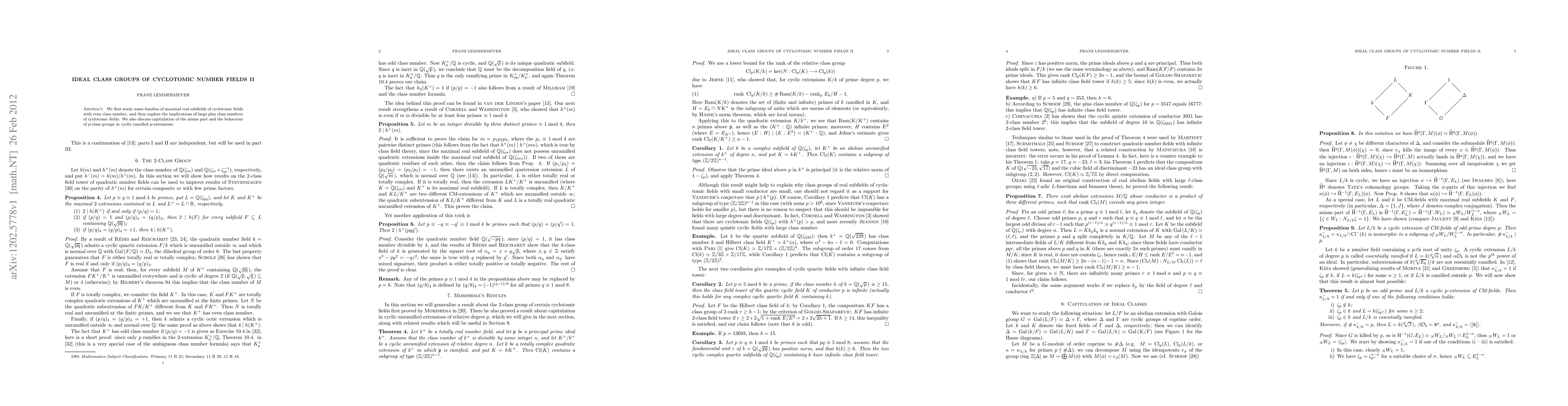 This paper investigates maximal real subfields of cyclotomic fields with even class numbers and examines the implications of large plus class numbers. It also explores the capitulation of the minus part and the behavior of p-class groups in cyclic ramified p-extensions.