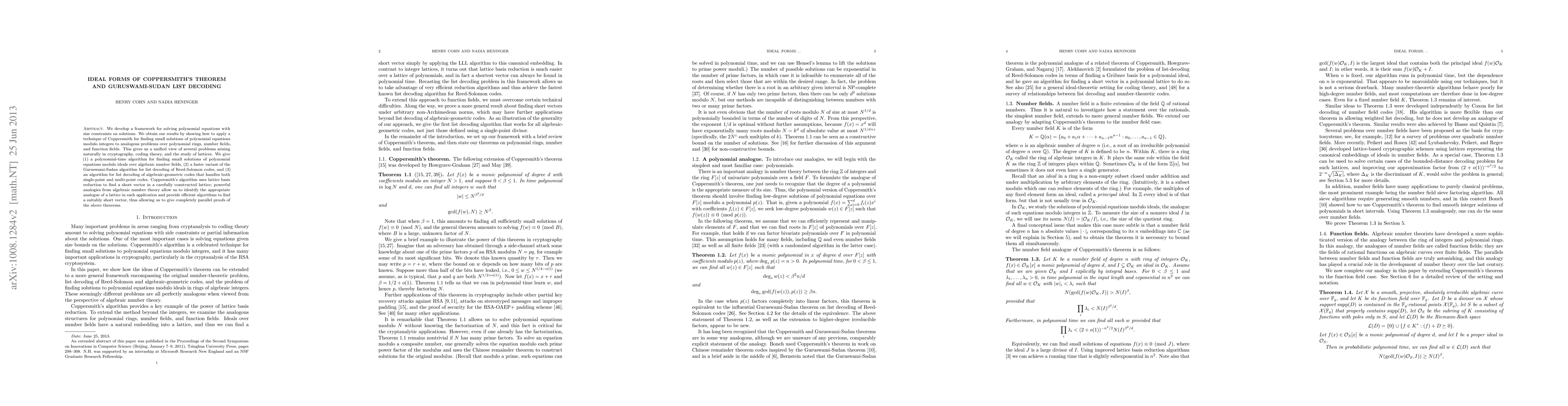 Researchers develop a unified framework for solving polynomial equations with size constraints using Coppersmith's algorithm, leading to improved list decoding algorithms for specific types of codes.
