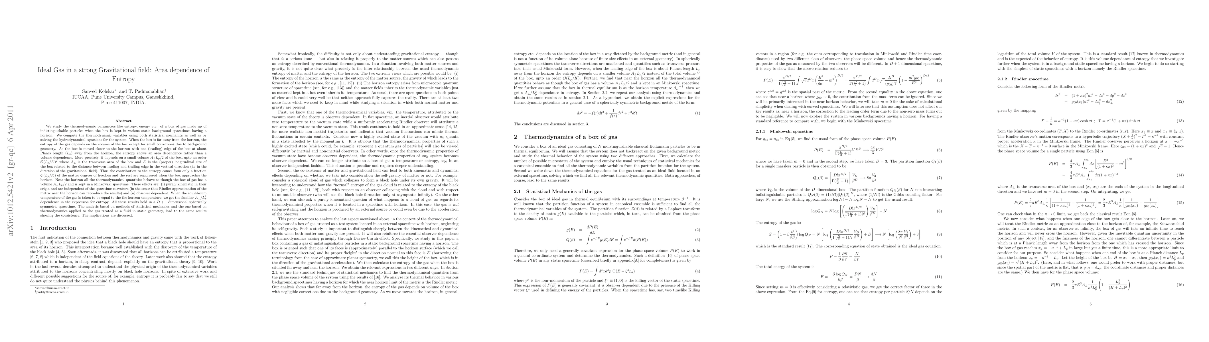 Research shows that in a strong gravitational field, a gas's entropy depends on its area, not volume, due to effects near the event horizon, with implications for understanding thermodynamics in curved spacetime.