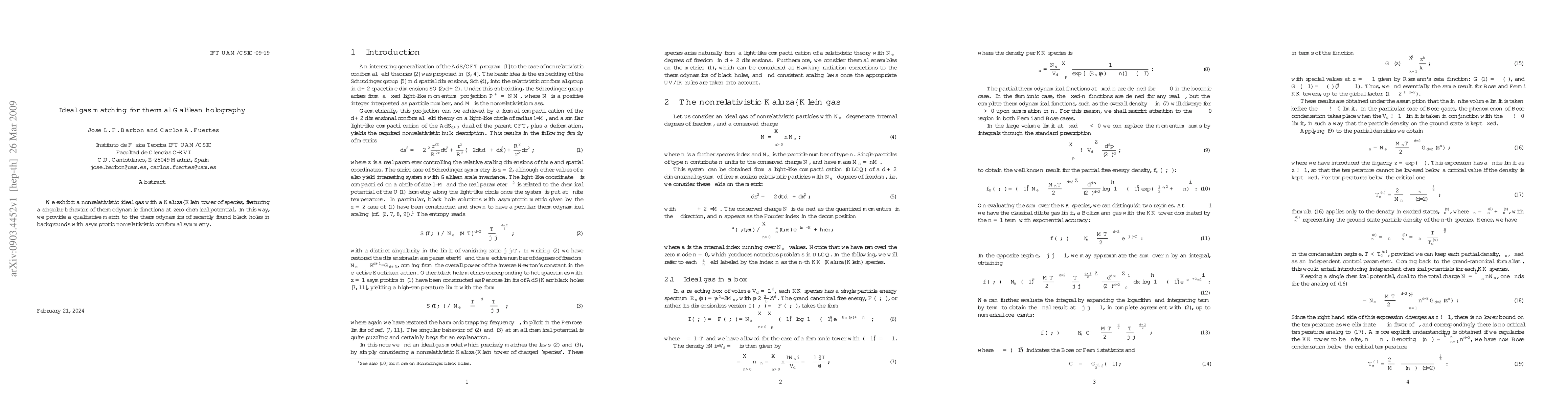 We exhibit a nonrelativistic ideal gas with a Kaluza-Klein tower of species, featuring a singular behavior of thermodynamic functions at zero chemical potential. In this way, we provide a qualitative match to the thermodynamics of recently found black holes in backgrounds with asymptotic nonrelativistic conformal symmetry.