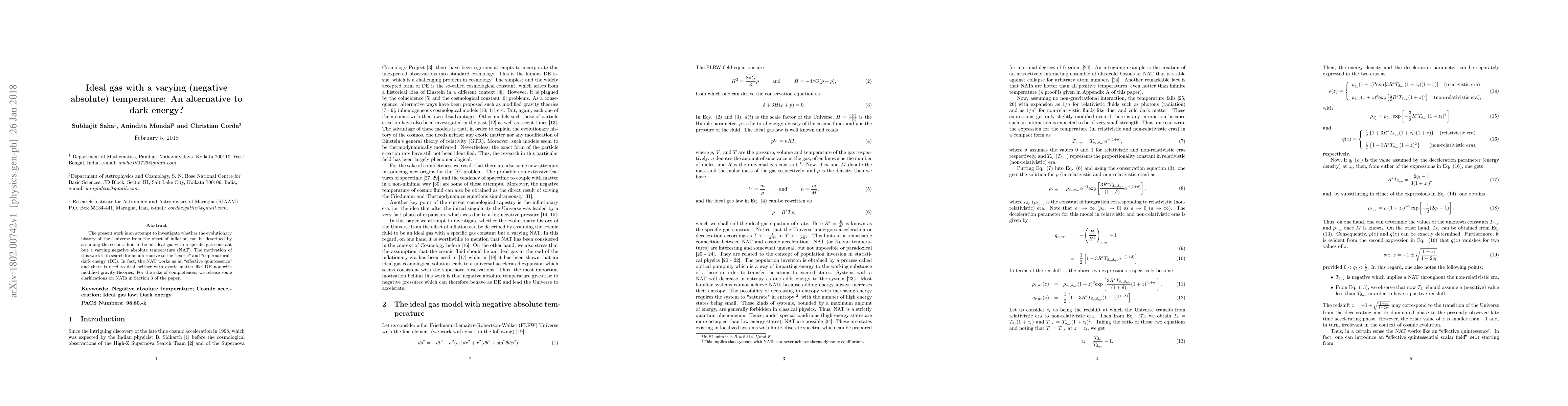 This paper proposes an alternative to dark energy called a varying negative absolute temperature ideal gas, which could help explain the universe's evolution without exotic matter or modified gravity theories.