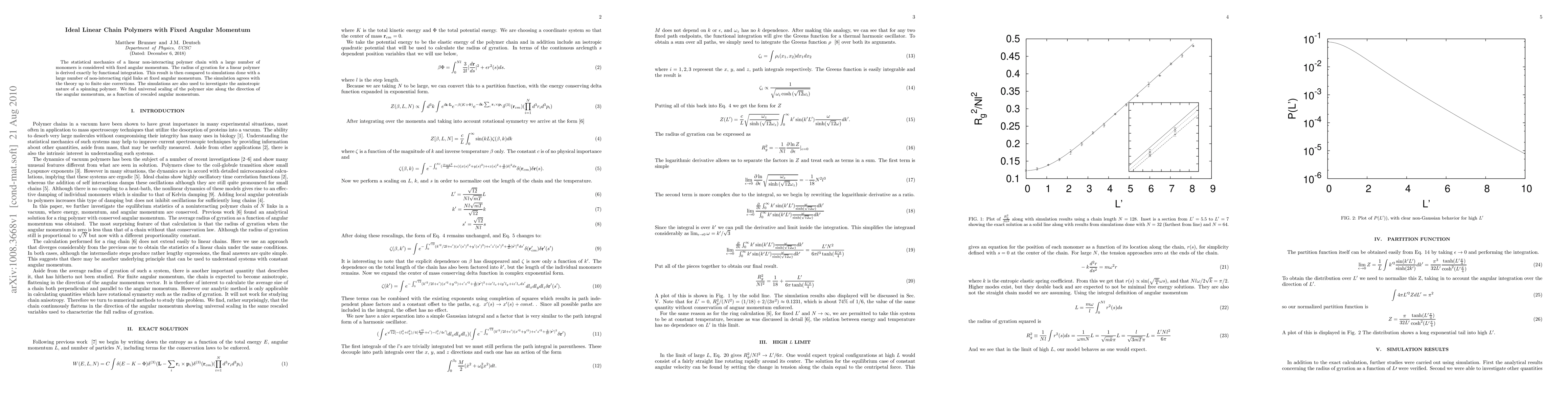 The study uses statistical mechanics and functional integration to derive the radius of gyration for a linear non-interacting polymer chain with fixed angular momentum. Simulations with non-interacting rigid links at fixed angular momentum are conducted to validate the theory.
