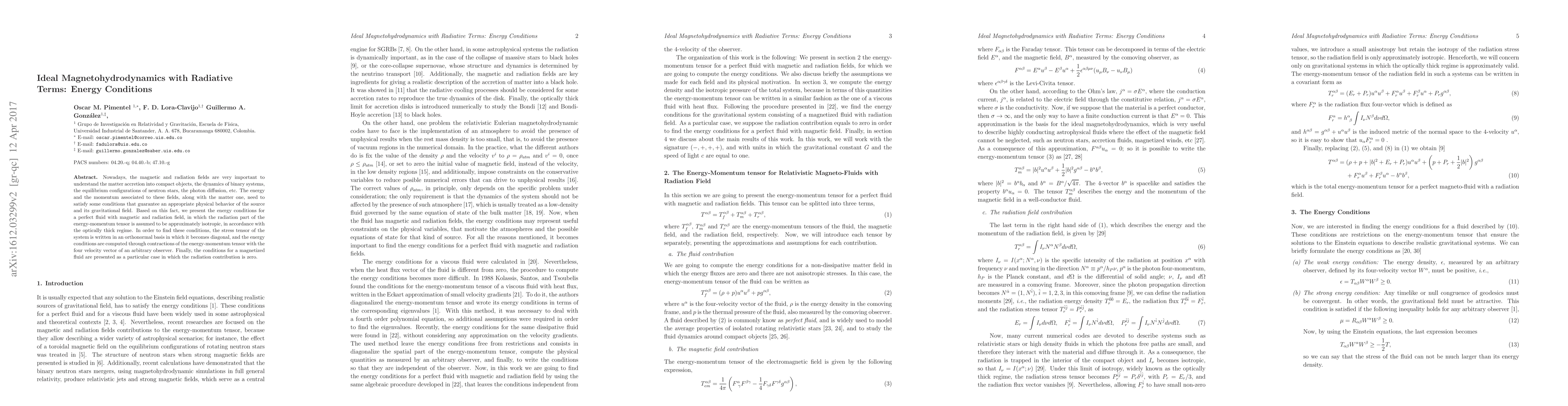 Researchers established energy conditions for a perfect fluid with magnetic and radiation fields, ensuring physical behavior of compact objects and binary systems. These conditions guarantee an appropriate balance between matter, momentum, and energy in the system.