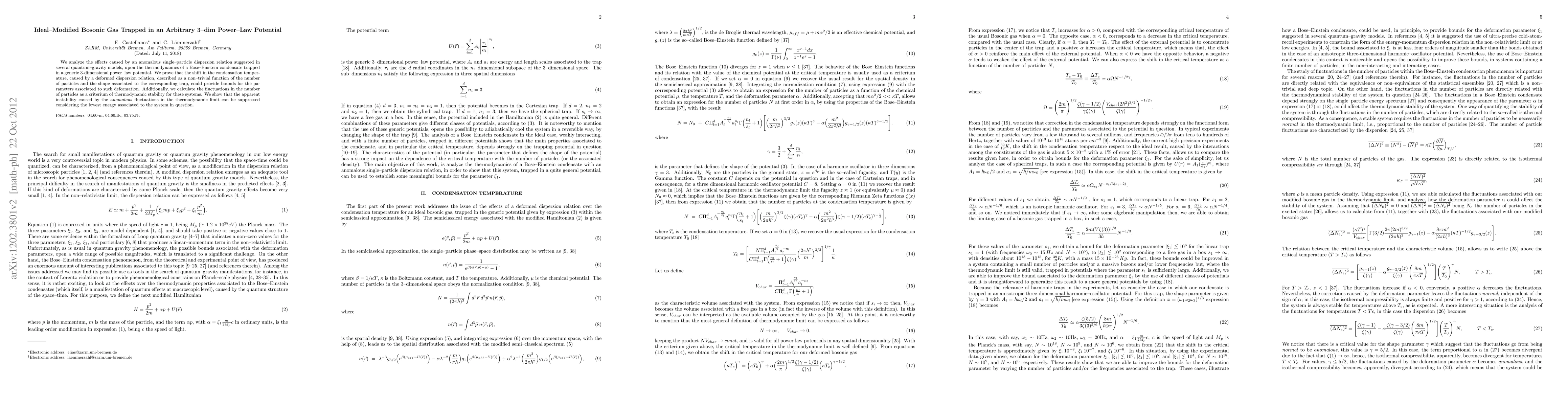 We analyze the effects caused by an anomalous single-particle dispersion relation suggested in several quantum-gravity models, upon the thermodynamics of a Bose-Einstein condensate trapped in a generic 3-dimensional power-law potential. We prove that the shift in the condensation temperature, caused by a deformed dispersion relation, described as a non-trivial function of the number of particles and the shape associated to the corresponding trap, could provide bounds for the parameters associated to such deformation. Additionally, we calculate the fluctuations in the number of particles as a criterium of thermodynamic stability for these systems. We show that the apparent instability caused by the anomalous fluctuations in the thermodynamic limit can be suppressed considering the lowest energy associated to the system in question.