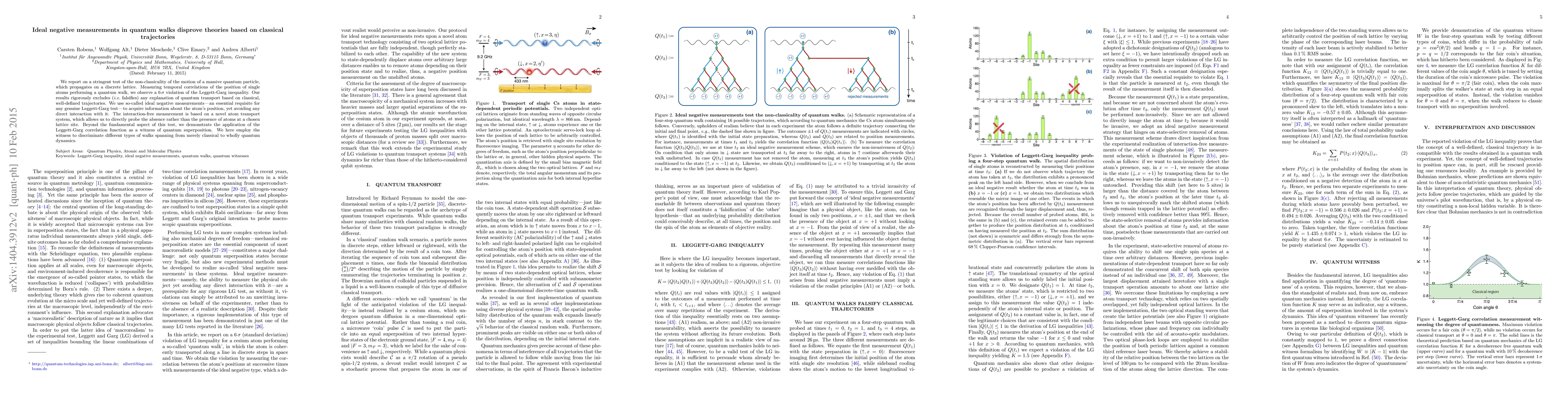 Researchers tested quantum walks with a 6sigma violation of the Leggett-Garg inequality, proving that classical trajectories cannot explain quantum transport, and demonstrated the use of the correlation function as a witness for quantum superposition.