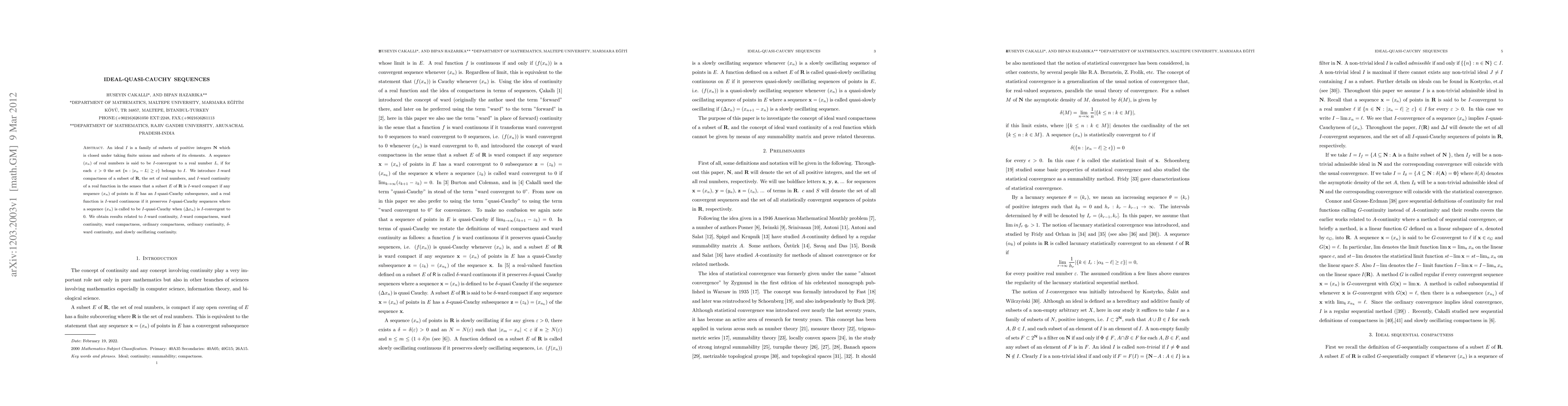 This paper explores the concept of $I$-convergence and introduces $I$-ward compactness and $I$-ward continuity, where sequences are $I$-quasi-Cauchy if their differences are $I$-convergent to 0. It establishes relationships between these new concepts and traditional notions of compactness and continuity.