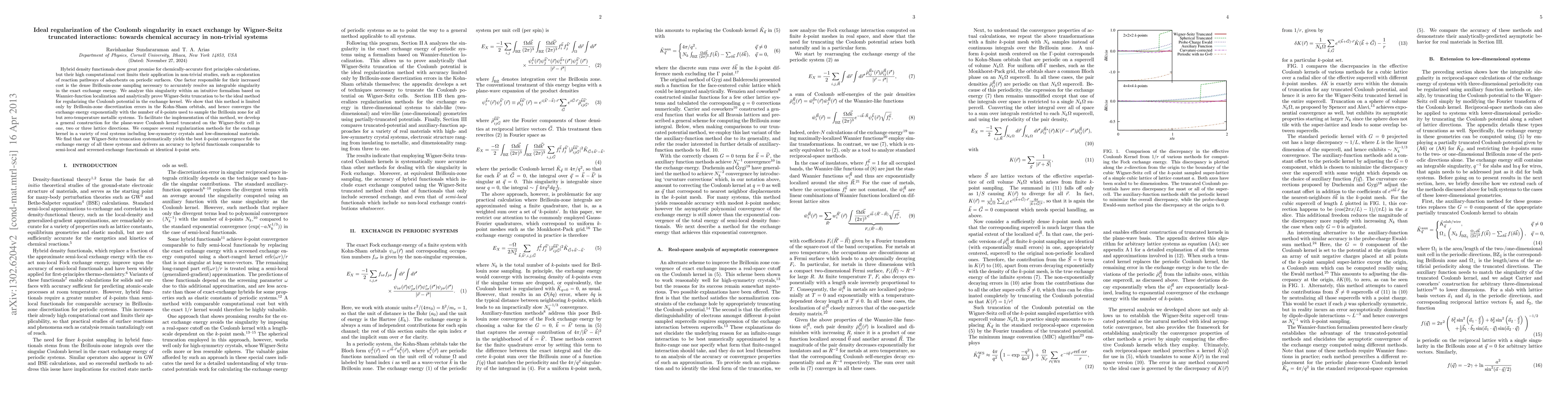 Hybrid density functionals show great promise for chemically-accurate first principles calculations, but their high computational cost limits their application in non-trivial studies, such as exploration of reaction pathways of adsorbents on periodic surfaces. One factor responsible for their increased cost is the dense Brillouin-zone sampling necessary to accurately resolve an integrable singularity in the exact exchange energy. We analyze this singularity within an intuitive formalism based on Wannier-function localization and analytically prove Wigner-Seitz truncation to be the ideal method for regularizing the Coulomb potential in the exchange kernel. We show that this method is limited only by Brillouin-zone discretization errors in the Kohn-Sham orbitals, and hence converges the exchange energy exponentially with the number of k-points used to sample the Brillouin zone for all but zero-temperature metallic systems. To facilitate the implementation of this method, we develop a general construction for the plane-wave Coulomb kernel truncated on the Wigner-Seitz cell in one, two or three lattice directions. We compare several regularization methods for the exchange kernel in a variety of real systems including low-symmetry crystals and low-dimensional materials. We find that our Wigner-Seitz truncation systematically yields the best k-point convergence for the exchange energy of all these systems and delivers an accuracy to hybrid functionals comparable to semi-local and screened-exchange functionals at identical k-point sets.