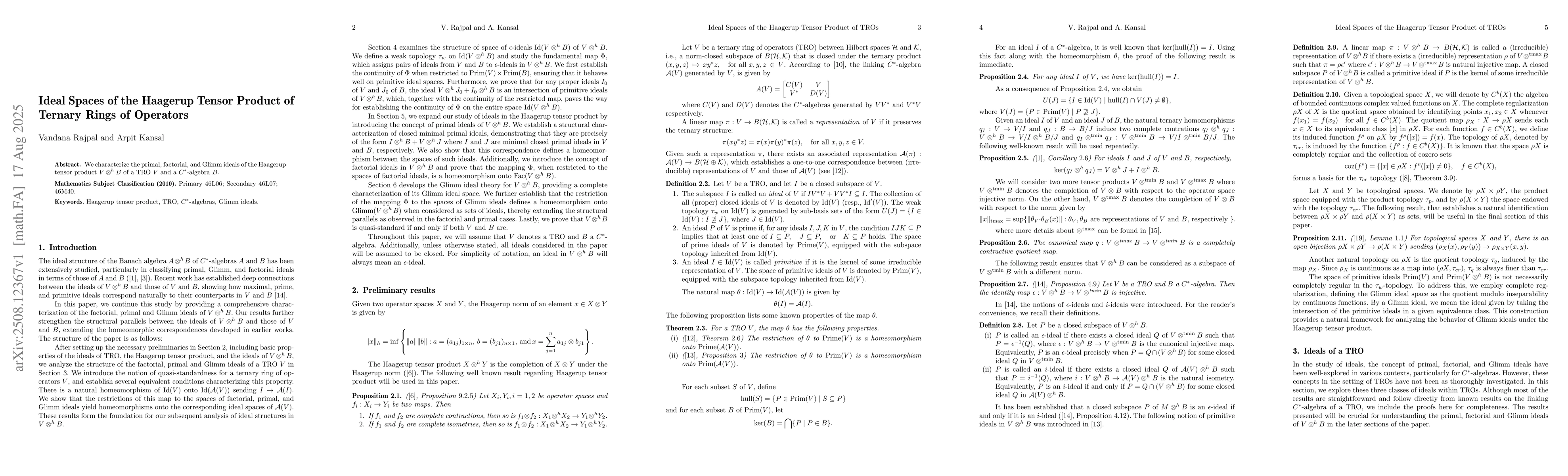 We characterize the primal, factorial, and Glimm ideals of the Haagerup tensor product $V\otimes^{h} B$ of a TRO $V$ and a $C^{\ast}$-algebra $B$.