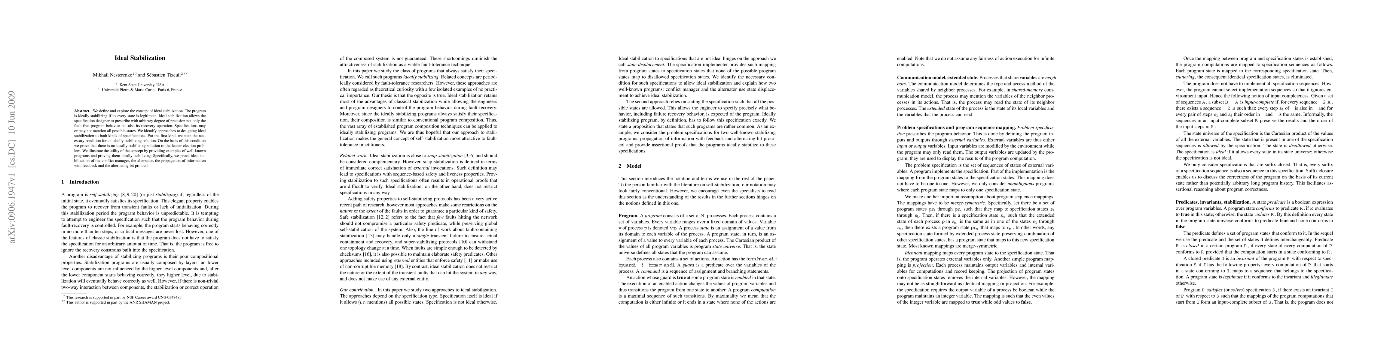 Researchers explore ideal stabilization in programming, a concept that ensures every state of a program is legitimate and allows for precise specification of fault-free behavior and recovery operations. They prove the non-existence of an ideally stabilizing solution to some well-known programs, but demonstrate its applicability to others.