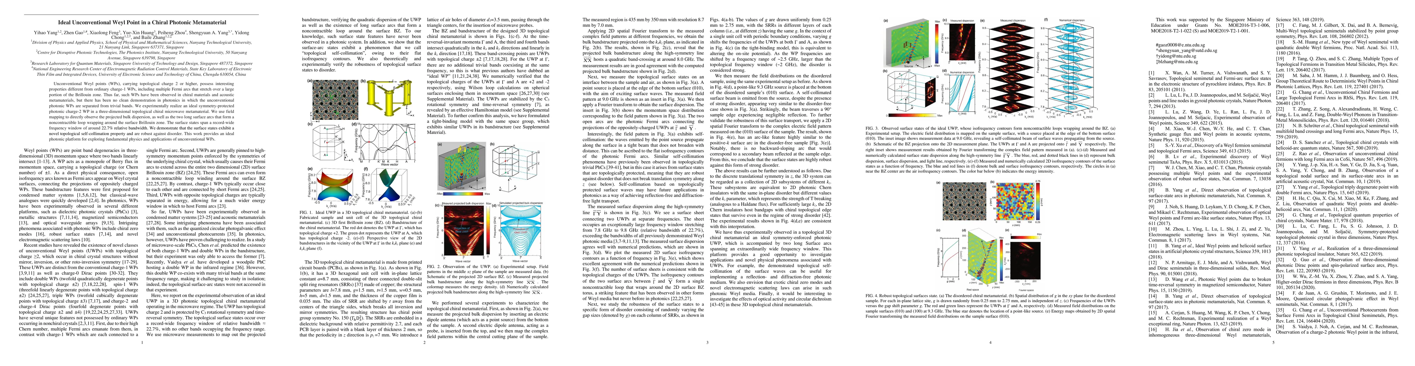 Unconventional Weyl points (WPs), carrying topological charge 2 or higher, possess interesting properties different from ordinary charge-1 WPs, including multiple Fermi arcs that stretch over a large portion of the Brillouin zone. Thus far, such WPs have been observed in chiral materials and acoustic metamaterials, but there has been no clean demonstration in photonics in which the unconventional photonic WPs are separated from trivial bands. We experimentally realize an ideal symmetry-protected photonic charge-2 WP in a three-dimensional topological chiral microwave metamaterial. We use field mapping to directly observe the projected bulk dispersion, as well as the two long surface arcs that form a noncontractible loop wrapping around the surface Brillouin zone. The surface states span a record-wide frequency window of around 22.7% relative bandwidth. We demonstrate that the surface states exhibit a novel topological self-collimation property and are robust against disorder. This work provides an ideal photonic platform for exploring fundamental physics and applications of unconventional WPs.