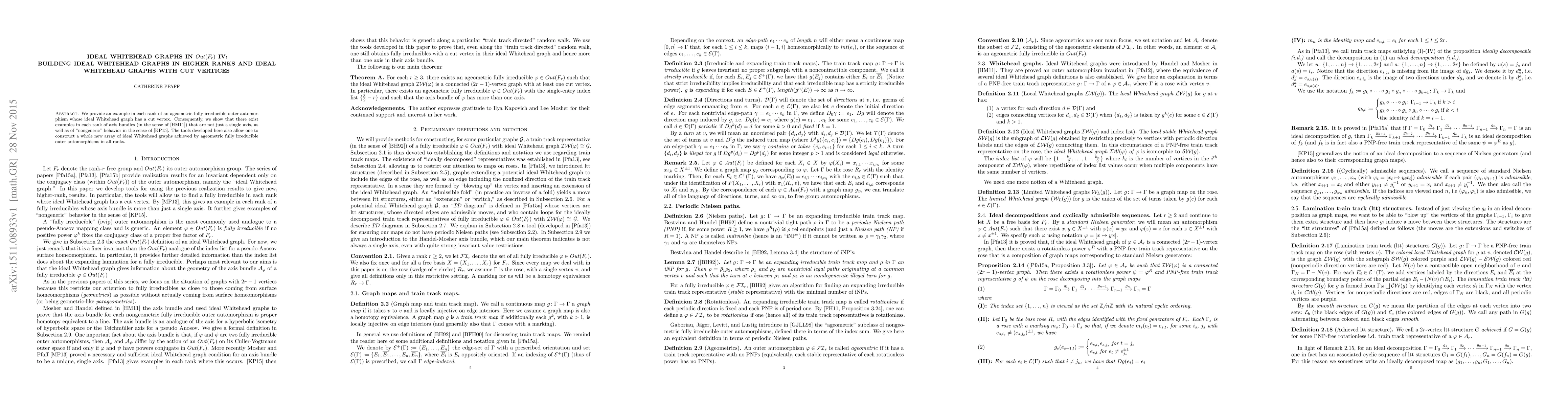 Researchers demonstrate the existence of ideal Whitehead graphs with cut vertices in higher ranks, showing non-generic behavior in outer automorphism theory and expanding the range of possible constructions.