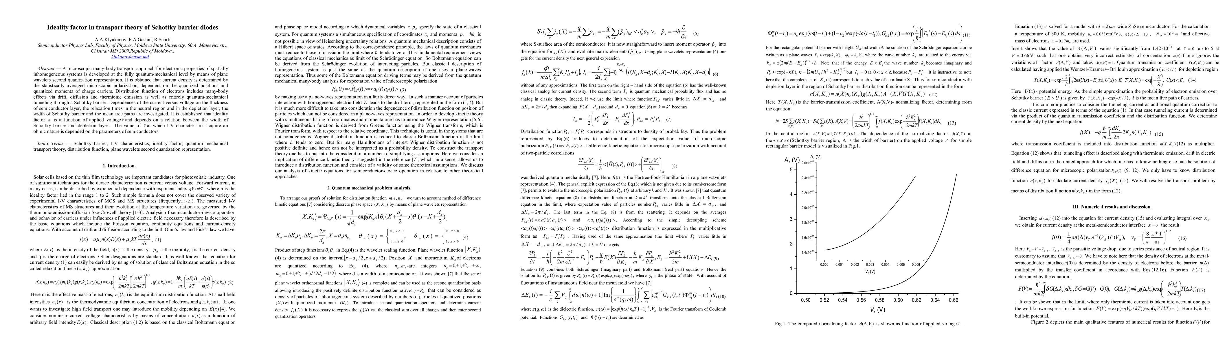 This paper develops a quantum-mechanical approach to study the electronic transport in Schottky barrier diodes, showing that the ideality factor varies with applied voltage and depends on the Schottky barrier width relative to the depletion layer. The study reveals how various semiconductor parameters influence the diode's current-voltage characteristics.