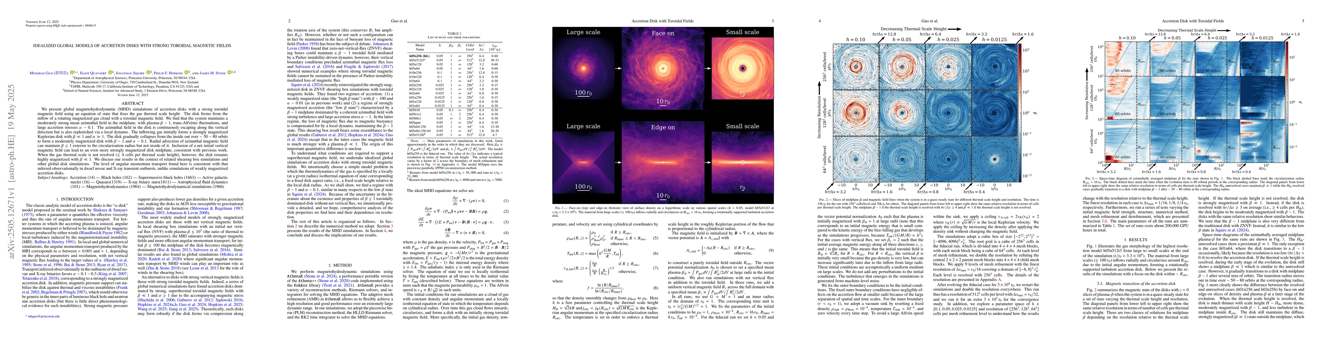 This work distinguishes itself by focusing on the global modeling of accretion disks with strong toroidal magnetic fields, offering a contrast to previous studies that often consider weakly magnetized disks.