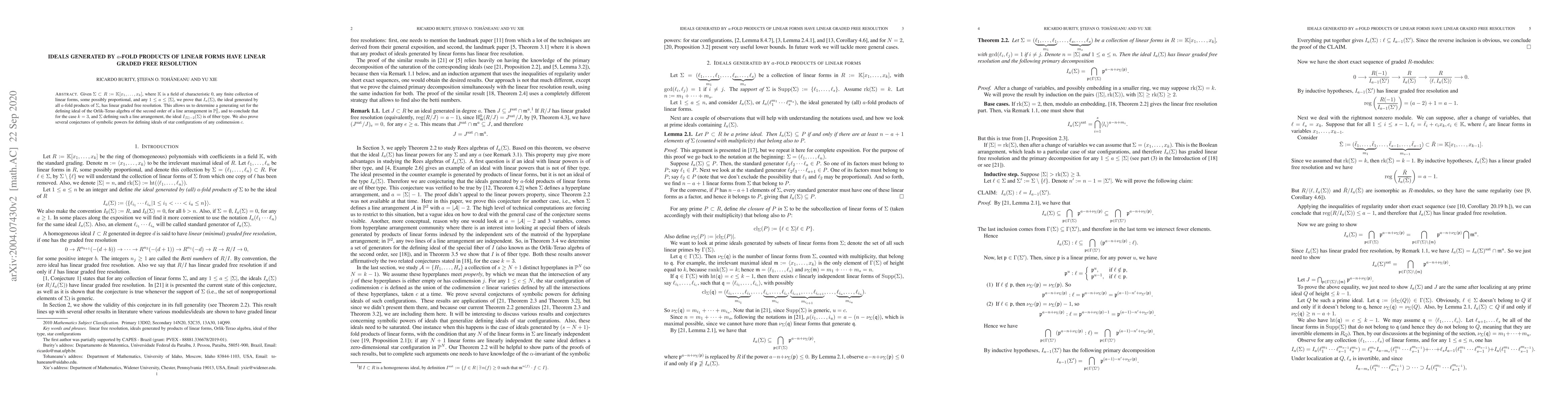 This paper proves that ideals generated by $a$-fold products of linear forms in a polynomial ring over a field of characteristic 0 have linear graded free resolution. It also determines a generating set for the Orlik-Terao algebra of second-order line arrangements and proves conjectures regarding symbolic powers for defining ideals of star configurations.