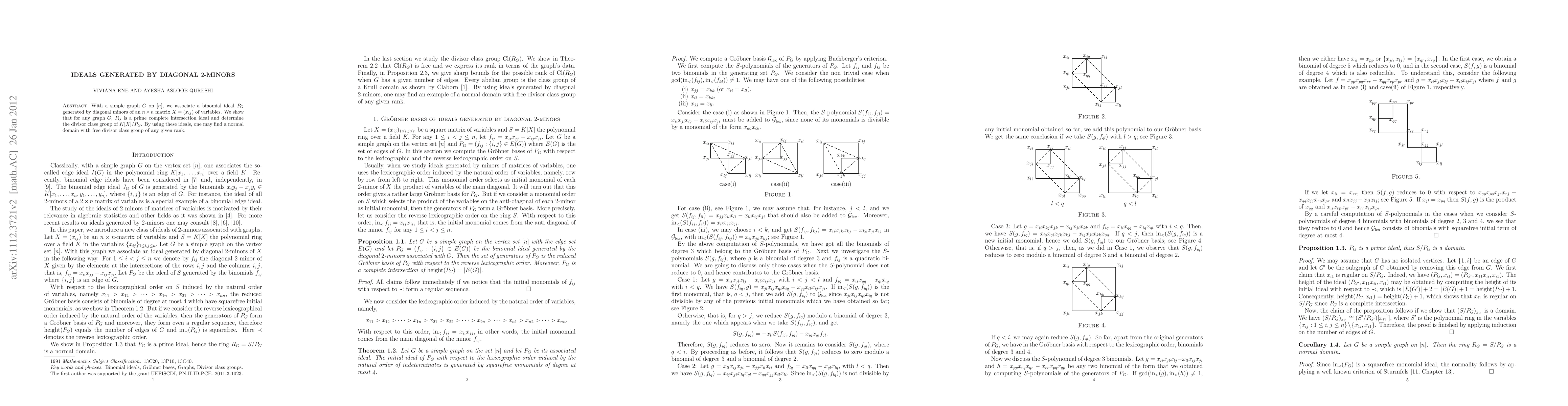 With a simple graph $G$ on $[n]$, we associate a binomial ideal $P_G$ generated by diagonal minors of an $n \times n$ matrix $X=(x_{ij})$ of variables. We show that for any graph $G$, $P_G$ is a prime complete intersection ideal and determine the divisor class group of $K[X]/ P_G$. By using these ideals, one may find a normal domain with free divisor class group of any given rank.