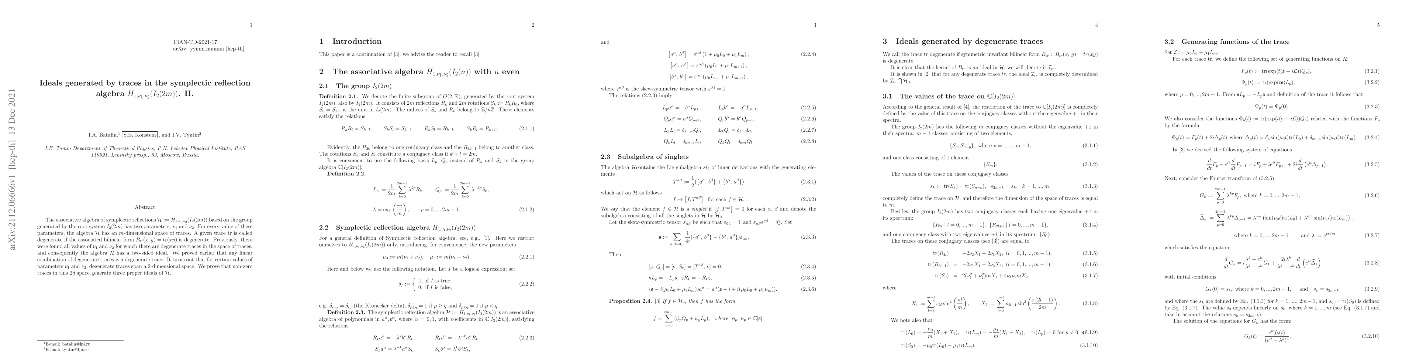 The associative algebra of symplectic reflections $\mathcal H:= H_{1,\nu_1, \nu_2}(I_2(2m))$ based on the group generated by the root system $I_2(2m)$ has two parameters, $\nu_1$ and $\nu_2$. For every value of these parameters, the algebra $\mathcal H$ has an $m$-dimensional space of traces. A given trace ${\rm tr}$ is called degenerate if the associated bilinear form $B_{\rm tr}(x,y)={\rm tr}(xy)$ is degenerate. Previously, there were found all values of $\nu_1$ and $\nu_2$ for which there are degenerate traces in the space of traces, and consequently the algebra $\mathcal H$ has a two-sided ideal. We proved earlier that any linear combination of degenerate traces is a degenerate trace. It turns out that for certain values of parameters $\nu_1$ and $\nu_2$, degenerate traces span a 2-dimensional space. We prove that non-zero traces in this $2d$ space generate three proper ideals of $\mathcal H$.