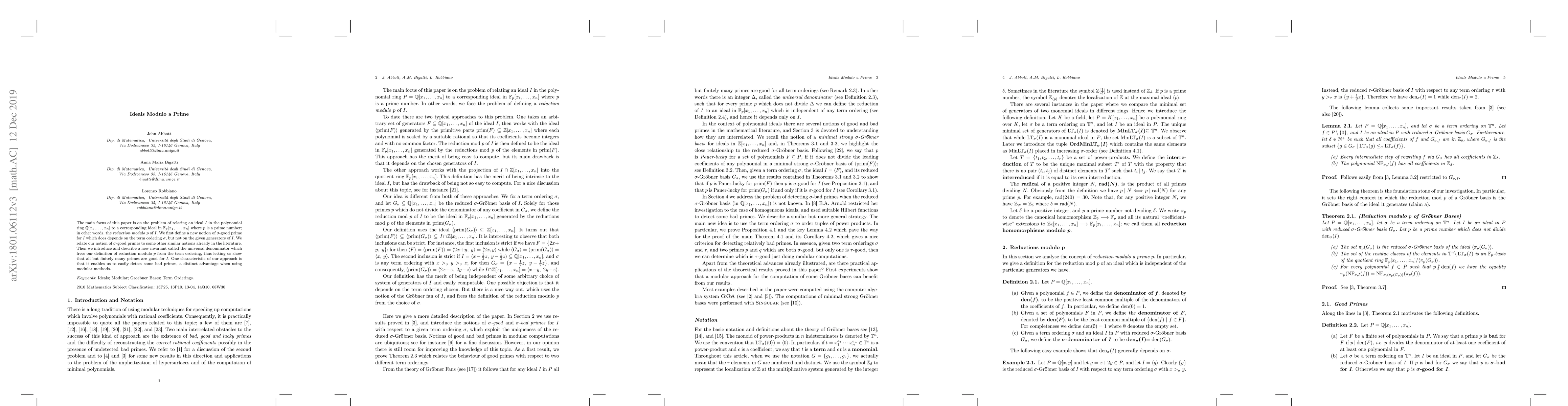 This paper explores the reduction of ideals $I$ in $\mathbb Q[x_1, \dots, x_n]$ modulo primes $p$, introducing $\sigma$-good primes and a universal denominator invariant. It demonstrates that all but finitely many primes are good for $I$, and provides a method to detect bad primes.