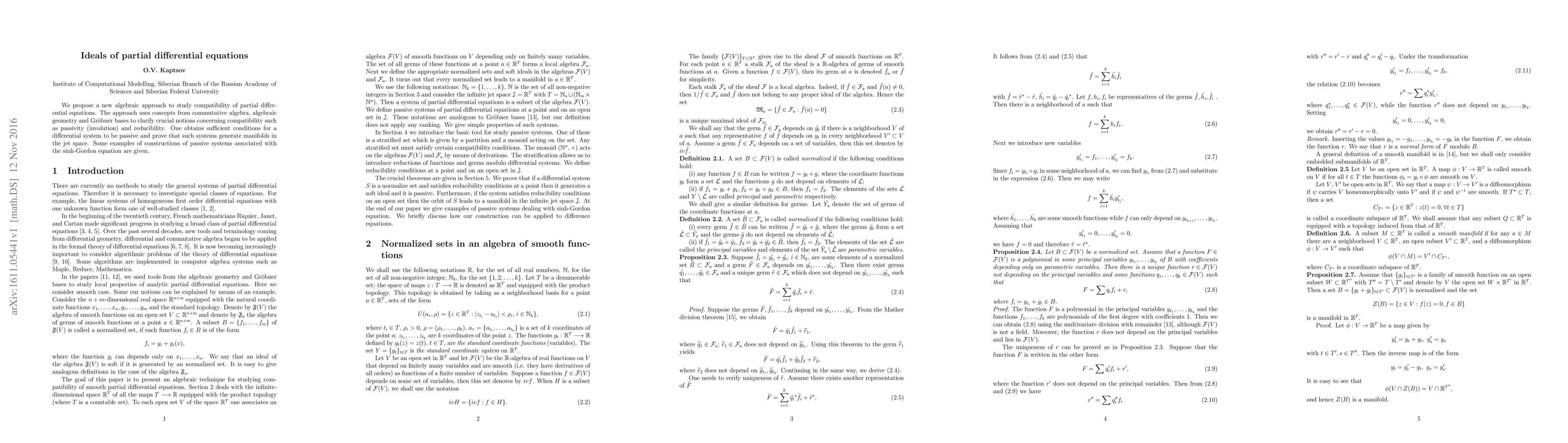 We propose a new algebraic approach to study compatibility of partial differential equations. The approach uses concepts from commutative algebra, algebraic geometry and Gr\"obner bases to clarify crucial notions concerning compatibility such as passivity (involution) and reducibility. One obtains sufficient conditions for a differential system to be passive and prove that such systems generate manifolds in the jet space. Some examples of constructions of passive systems associated with the sinh-Gordon equation are given.