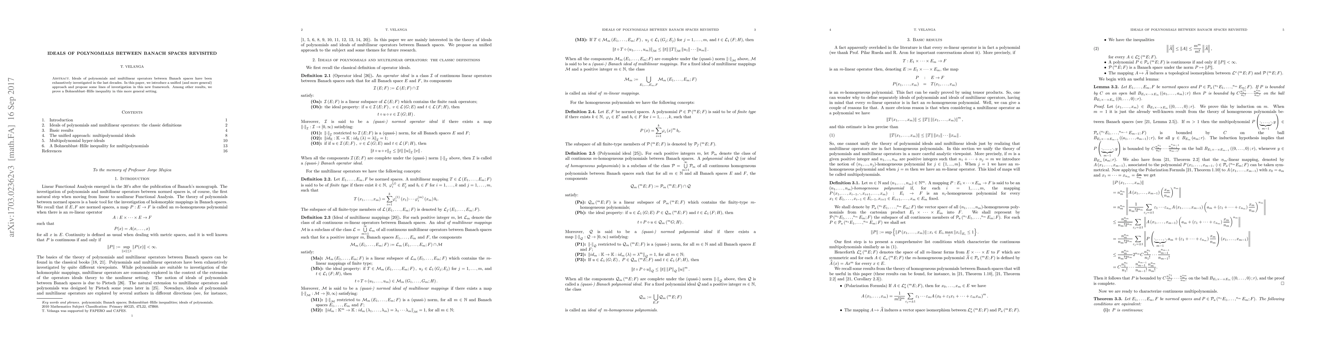 This paper presents a unified approach to studying ideals of polynomials and multilinear operators between Banach spaces, proposing new lines of investigation and proving a generalized Bohnenblust--Hille inequality within this framework.