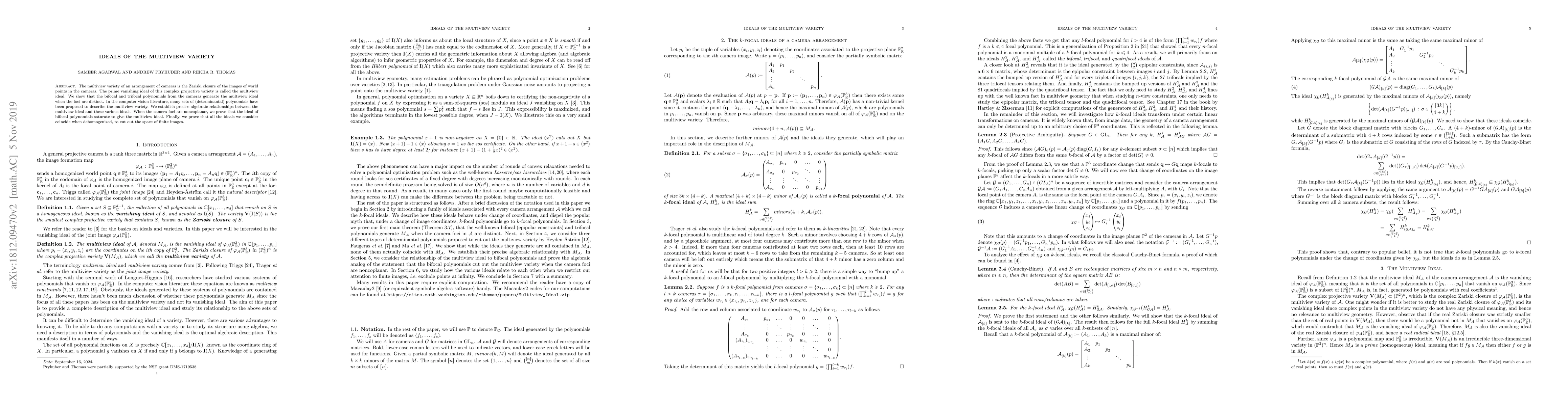 The paper establishes that bifocal and trifocal polynomials generate the multiview ideal for distinct camera foci, and precisely relates this ideal to other proposed determinantal ideals in computer vision. It also shows that when camera foci are noncoplanar, the bifocal polynomial ideal saturates to the multiview ideal, and all considered ideals coincide when dehomogenized.