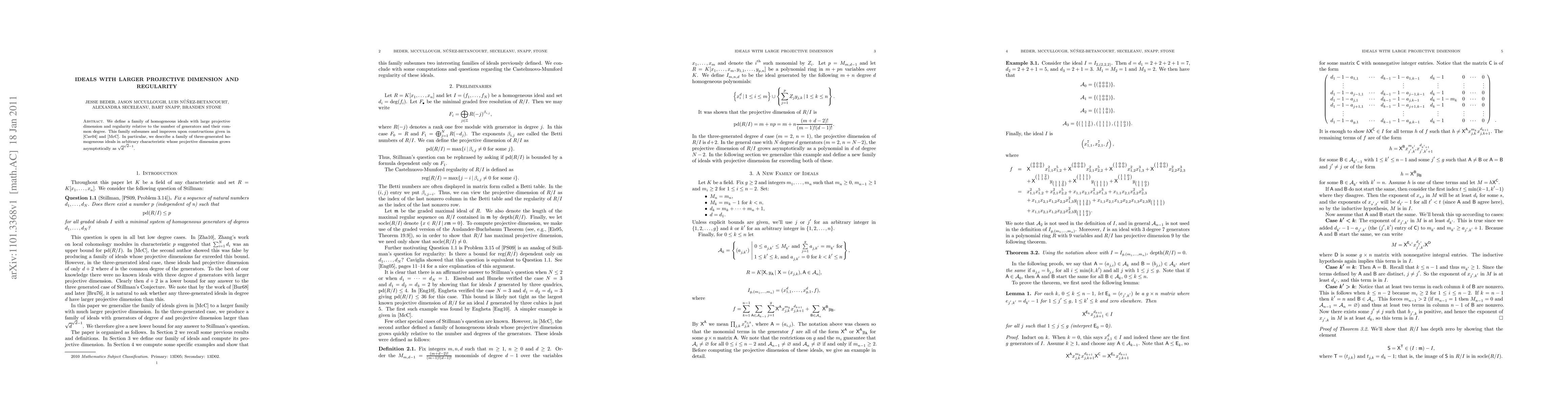 This paper introduces a new family of homogeneous ideals with significantly larger projective dimension and regularity compared to previous constructions, particularly improving upon [Cav04] and [McC]. The ideals, three-generated and defined in any characteristic, exhibit a projective dimension that grows asymptotically as sqrt{d}^(sqrt(d) - 1).