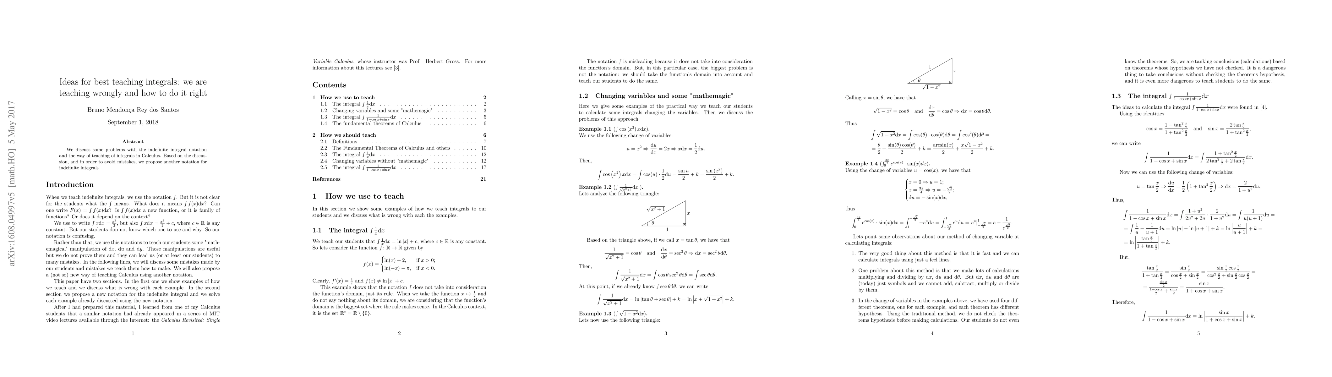We discuss some problems with the indefinite integral notation and the way of teaching of integrals in Calculus. Based on the discussion, and in order to avoid mistakes, we propose another notation for indefinite integrals.