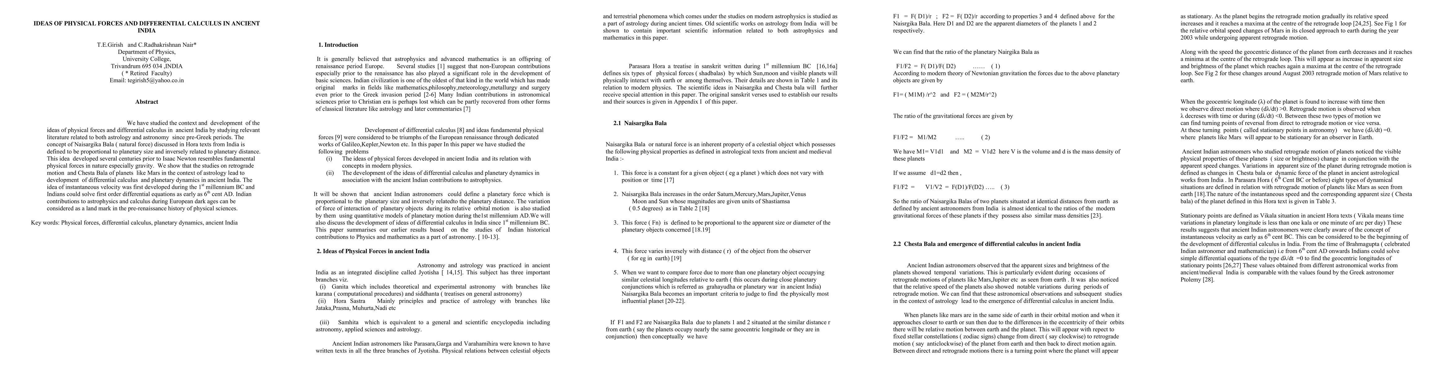 This paper explores the ancient Indian concepts of physical forces, particularly Naisargika Bala, and the development of differential calculus in the context of astrology and astronomy, predating Newton's work. It highlights the Indian mathematical advancements in solving first-order differential equations, marking significant contributions to astrophysics during the European dark ages.